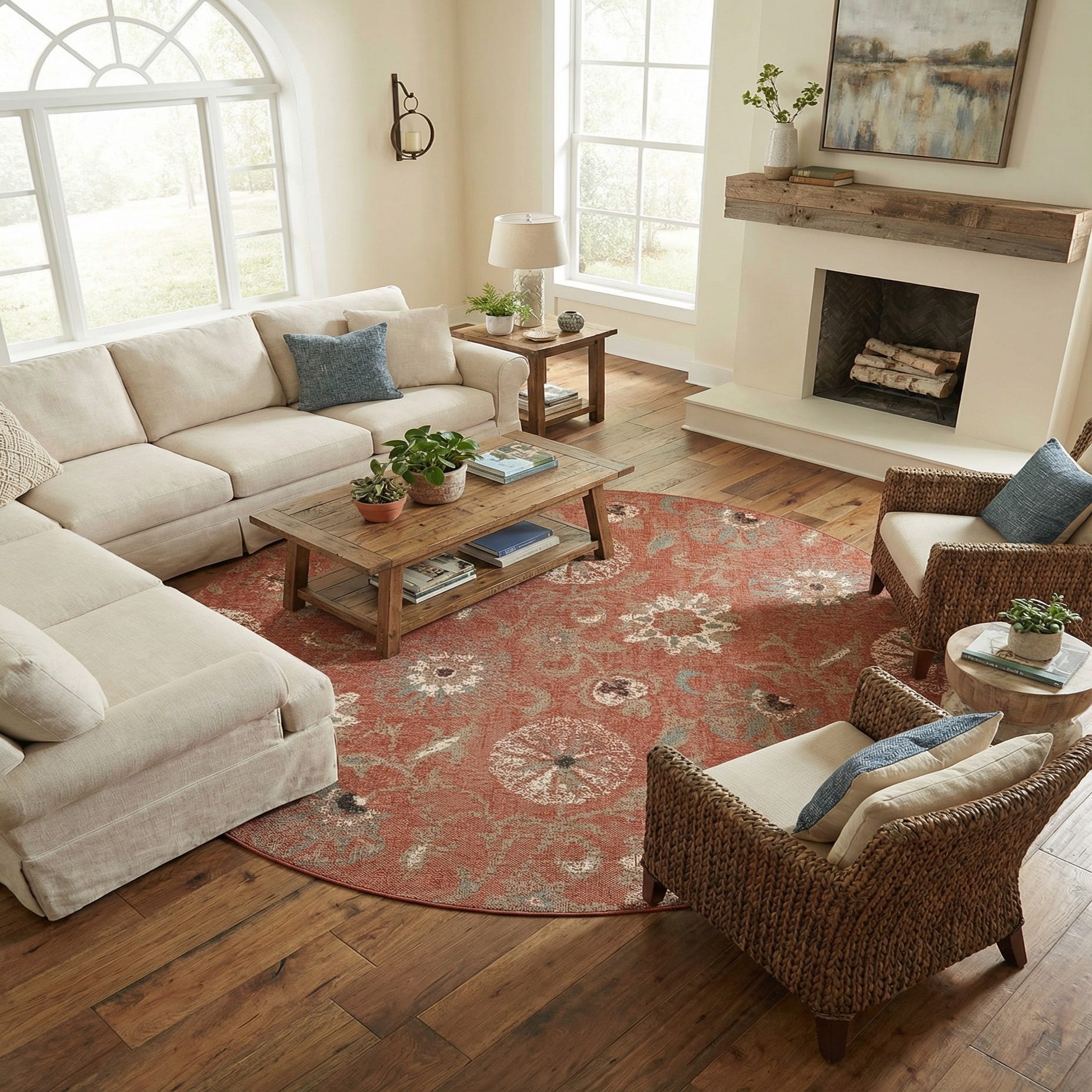 7' 10 x 7' 10 Washable Botanical Indoor / Outdoor Round Rug