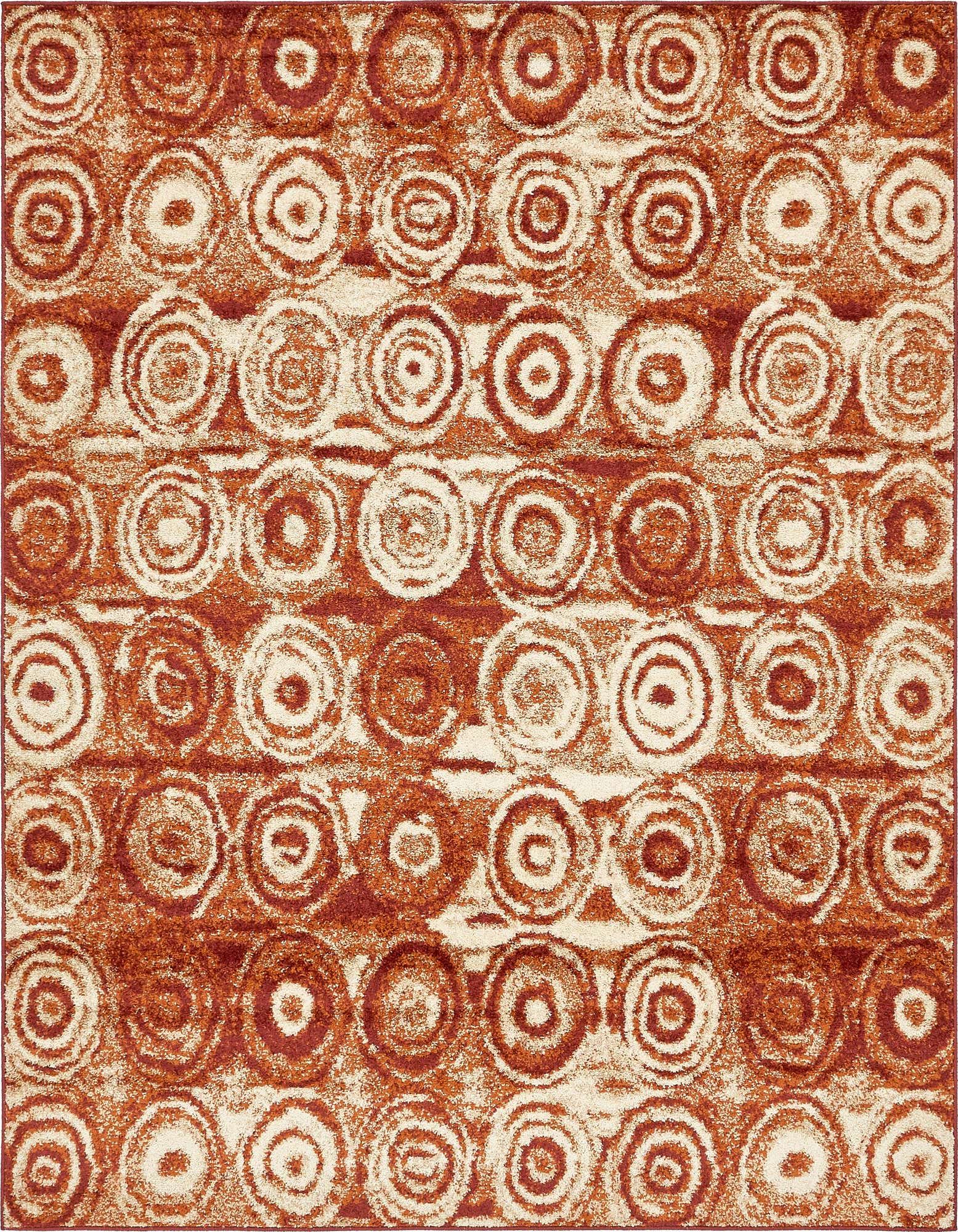 Primary color is Terracotta. Colors in this rug include: Terracotta, Beige, Burgundy.