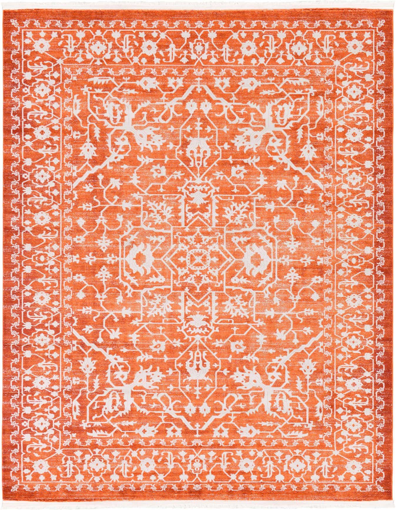 From the Modern Classical collection, this machine-woven 8x11 rug is crafted with meticulous attention to detail using 70% Polypropylene and 30% Polyester, providing both durability and a soft underfoot feel. The design presents a timeless pattern, blending traditional motifs with a fresh, contemporary approach. Set against a rich terracotta background, the ivory accents introduce a sense of warmth and sophistication to any space.