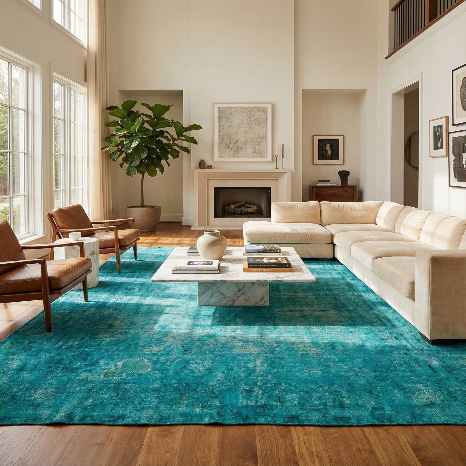 Primary color is Turquoise. Colors in this rug include: Turquoise, Light Blue, Teal, Ivory.
