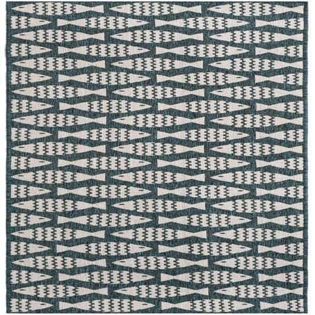 Primary color is Turquoise. Colors in this rug include: Turquoise, Ivory.