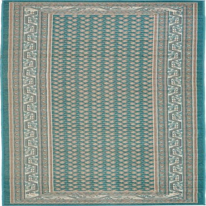 Primary color is Turquoise. Colors in this rug include: Turquoise, Beige, Gray.