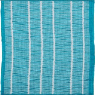 Primary color is Turquoise. Colors in this rug include: Turquoise, Ivory.