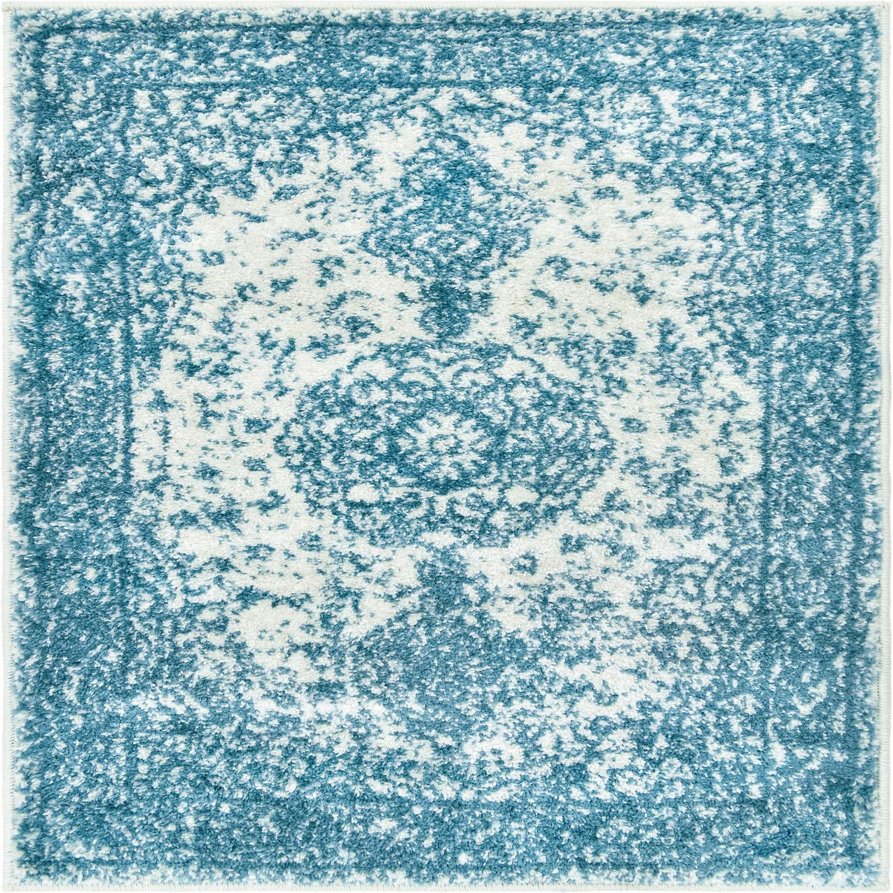 Primary color is Turquoise. Colors in this rug include: Turquoise, Ivory.