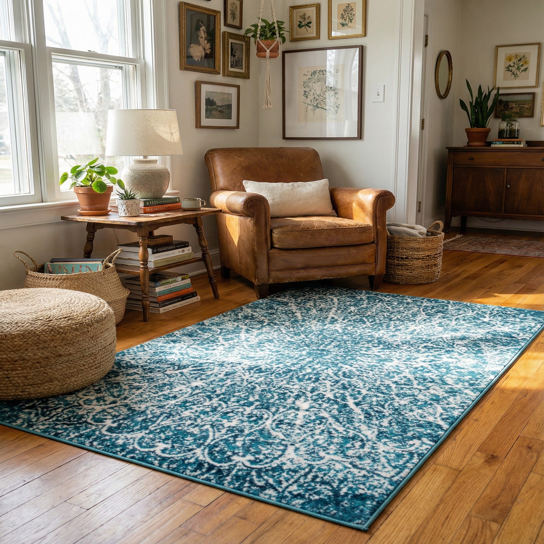 Well-suited to coastal, transitional, or contemporary interiors, this rug adds color and pattern without overwhelming a room. Use it to anchor a small seating area, brighten an entryway or layer it in a bedroom or home office for added warmth and texture. It pairs nicely with warm wood tones, crisp white furnishings, navy accents, and natural materials like rattan or linen.