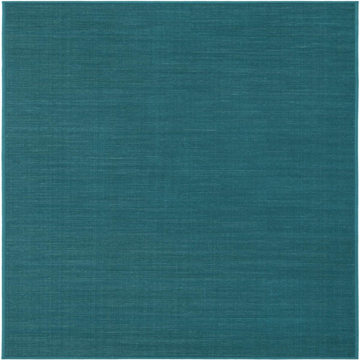 A solid field of turquoise is finished with fine, horizontal striations that add subtle depth and a woven, linen-like texture to the surface. The low-profile pile and minimal pattern create a clean, contemporary feel, while the machine-made construction in 100% polypropylene gives the rug a smooth, slightly firm hand that’s suited to everyday use and higher-traffic rooms.