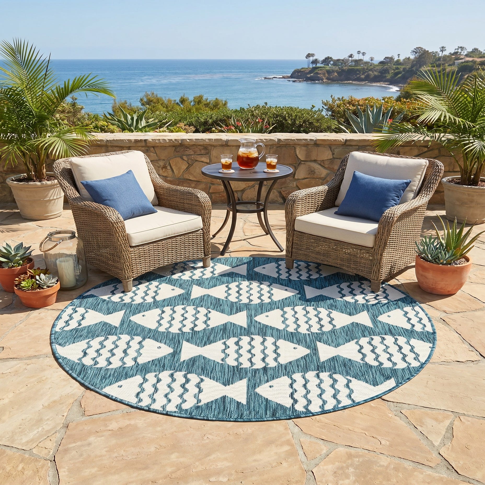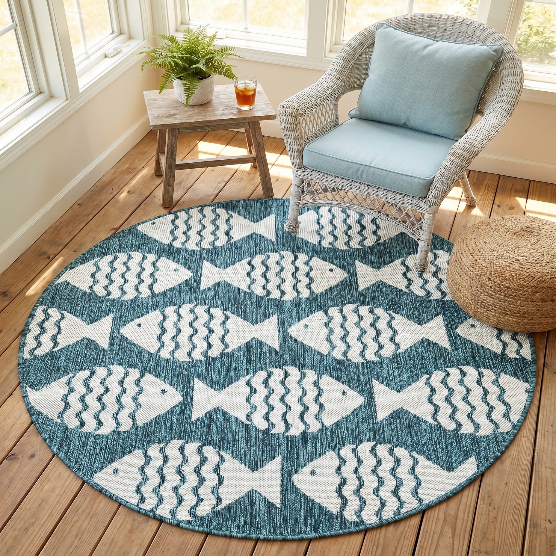 4' 1 x 4' 1 Easy-Clean Coastal Indoor / Outdoor Round Rug