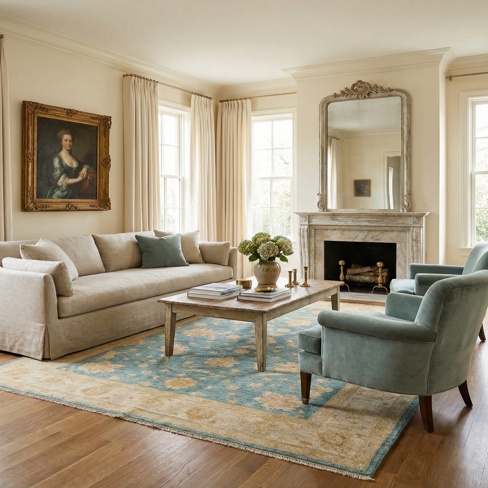 This versatile rug can serve as a calming anchor in a minimally styled room or can complement a space with nautical or bohemian themes, where its turquoise and beige color palette would add depth and warmth. Additionally, the Kaizar rug could elegantly contrast with darker wood flooring or stand out beautifully against a light, neutral interior scheme, making it a flexible choice for interior design applications.