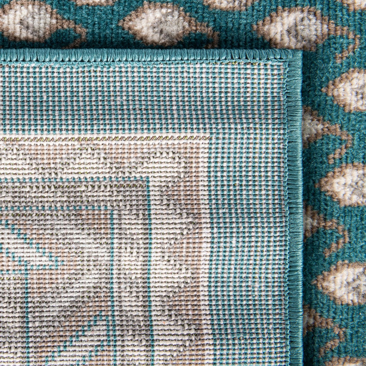 Primary color is Turquoise. Colors in this rug include: Turquoise, Ivory, Light Brown.