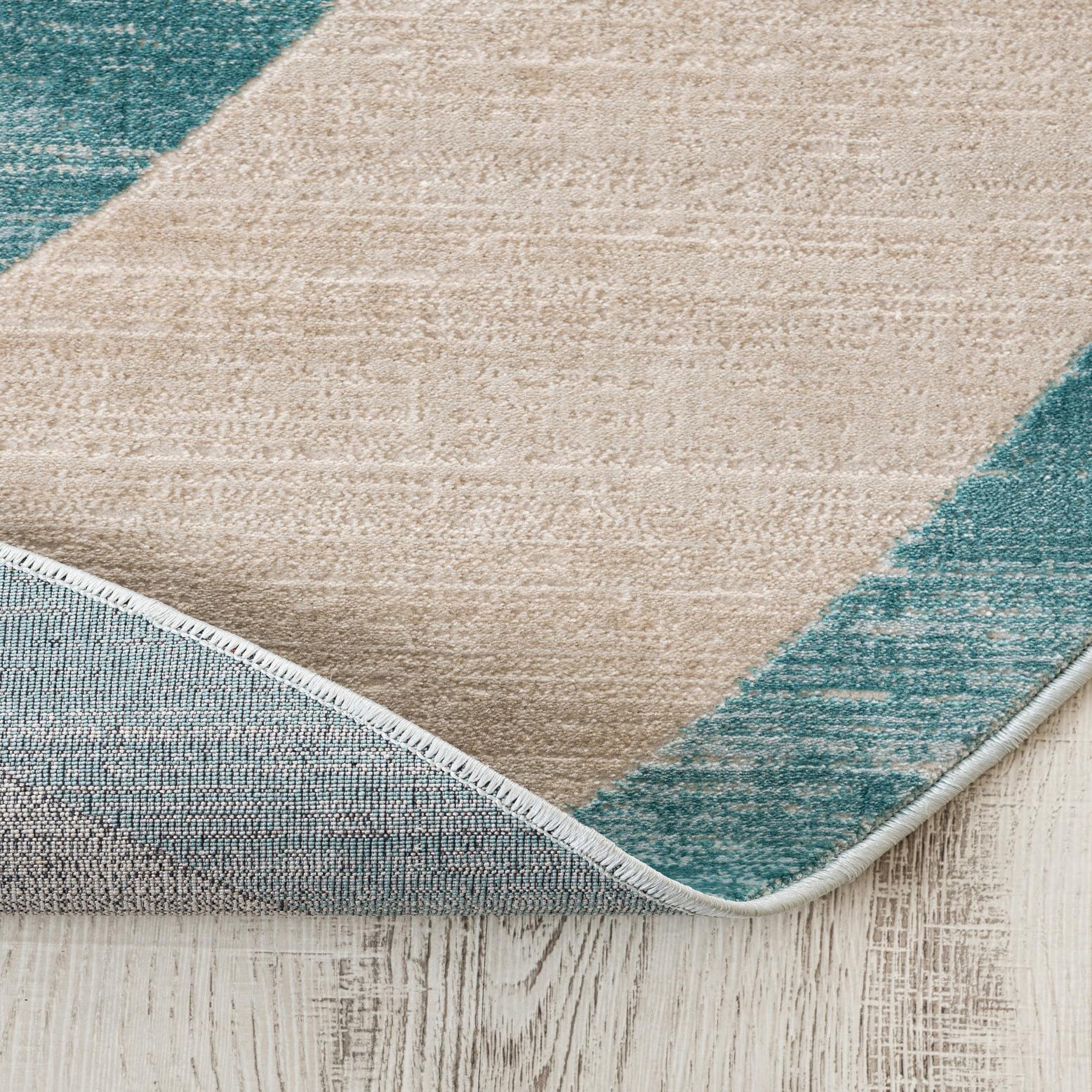 Primary color is Turquoise. Colors in this rug include: Turquoise, Ivory.
