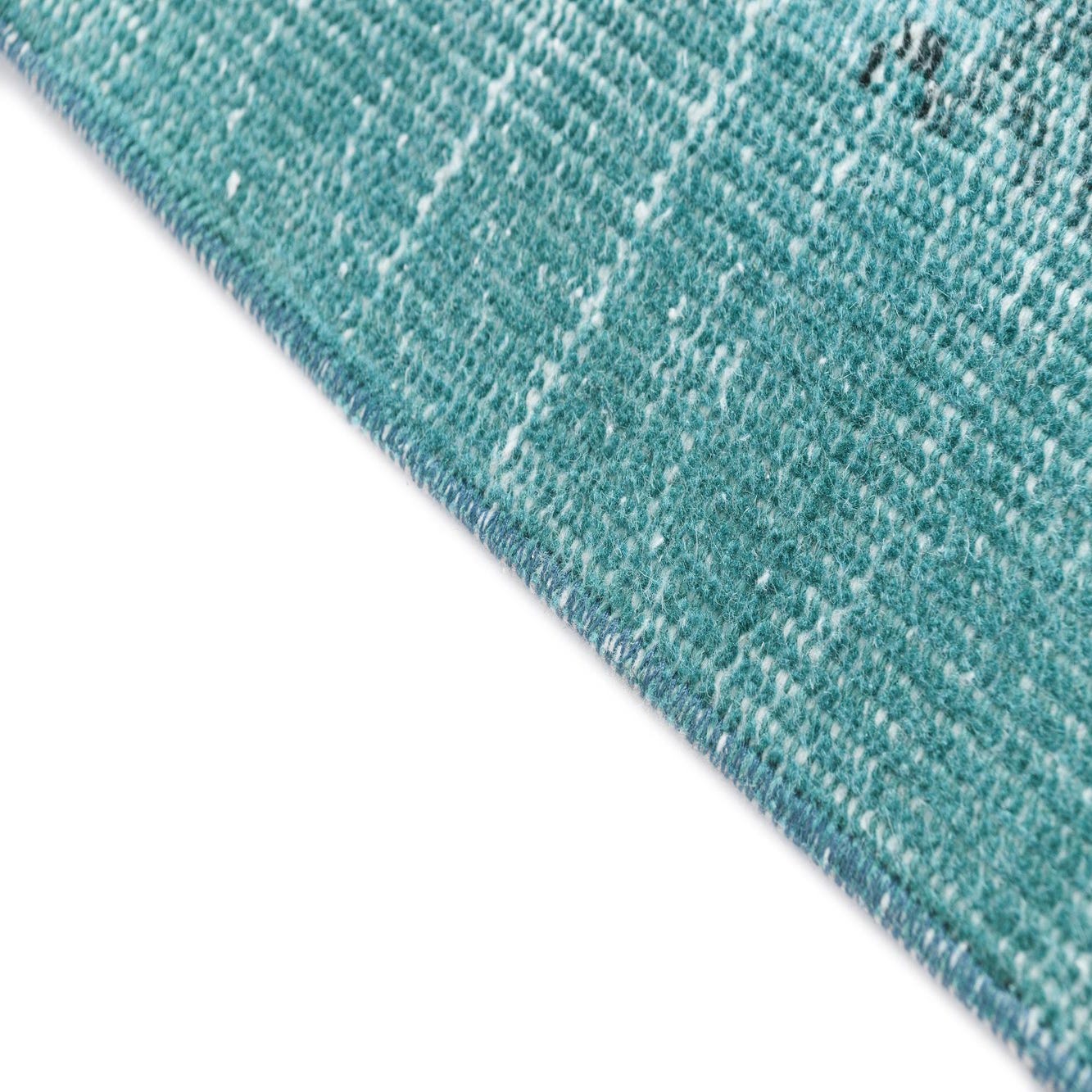 Primary color is Turquoise. Colors in this rug include: Turquoise, Black, Light Blue, Teal.