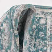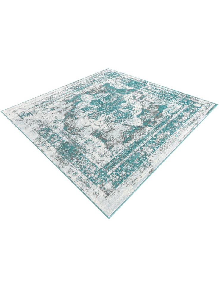The Monte Carlo Collection offers a 6 Ft Square rug that showcases a modern interpretation of traditional oriental designs. Machine woven with 100% polypropylene fibers, this piece is designed for durability and longevity. A bold turquoise serves as the background for intricate patterning in hues of blue, gray, and ivory, providing a captivating visual contrast and adding vibrant color to any room. The rug's texture is smooth to the touch and features precise detailing in its pattern execution.