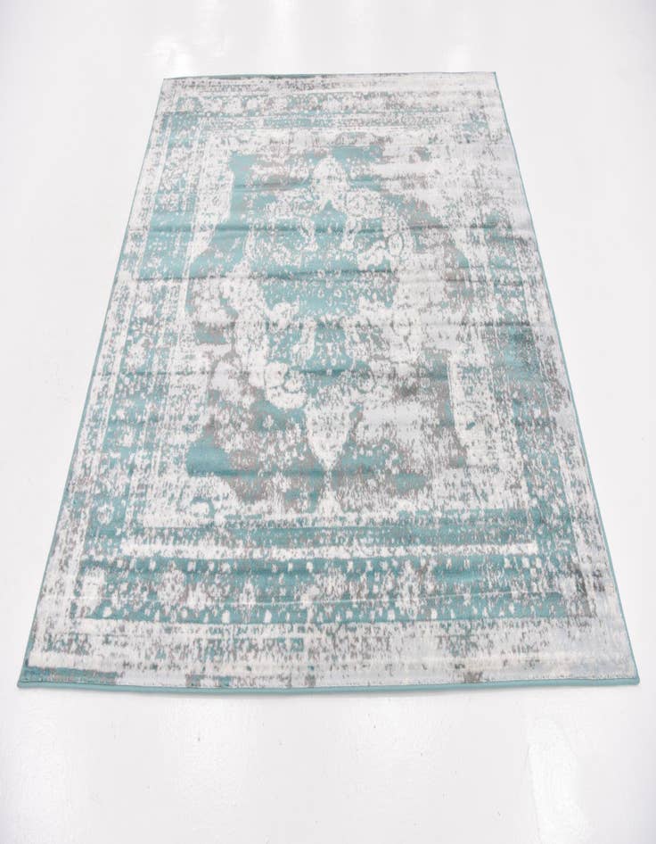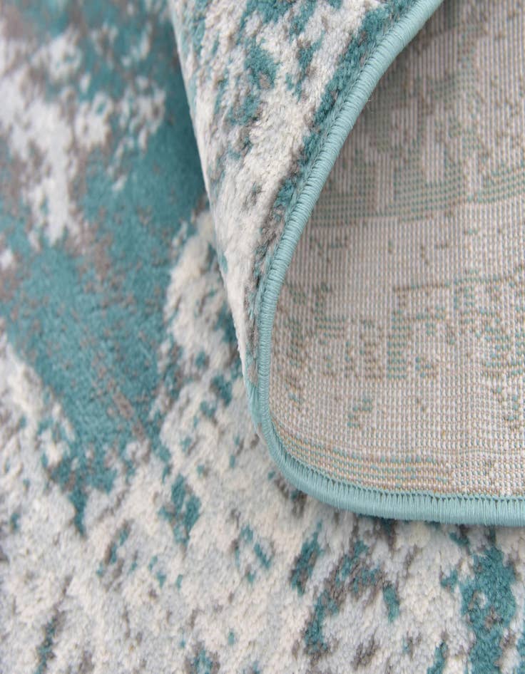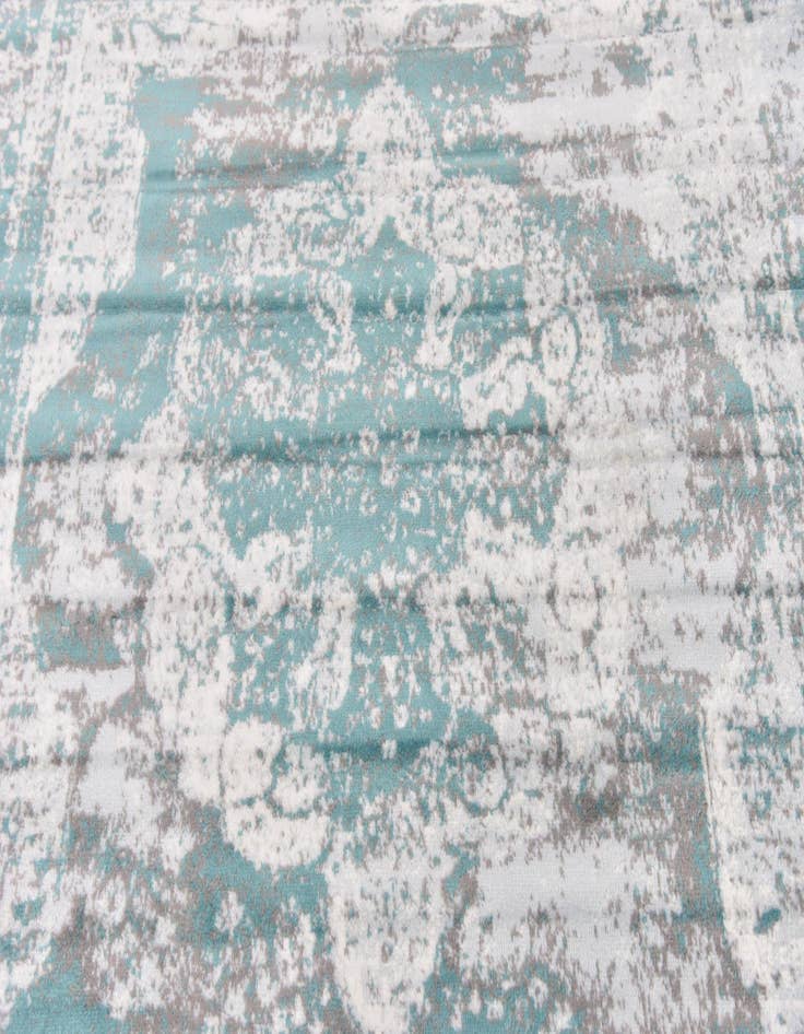 Primary color is Turquoise. Colors in this rug include: Turquoise, Blue, Gray, Ivory.