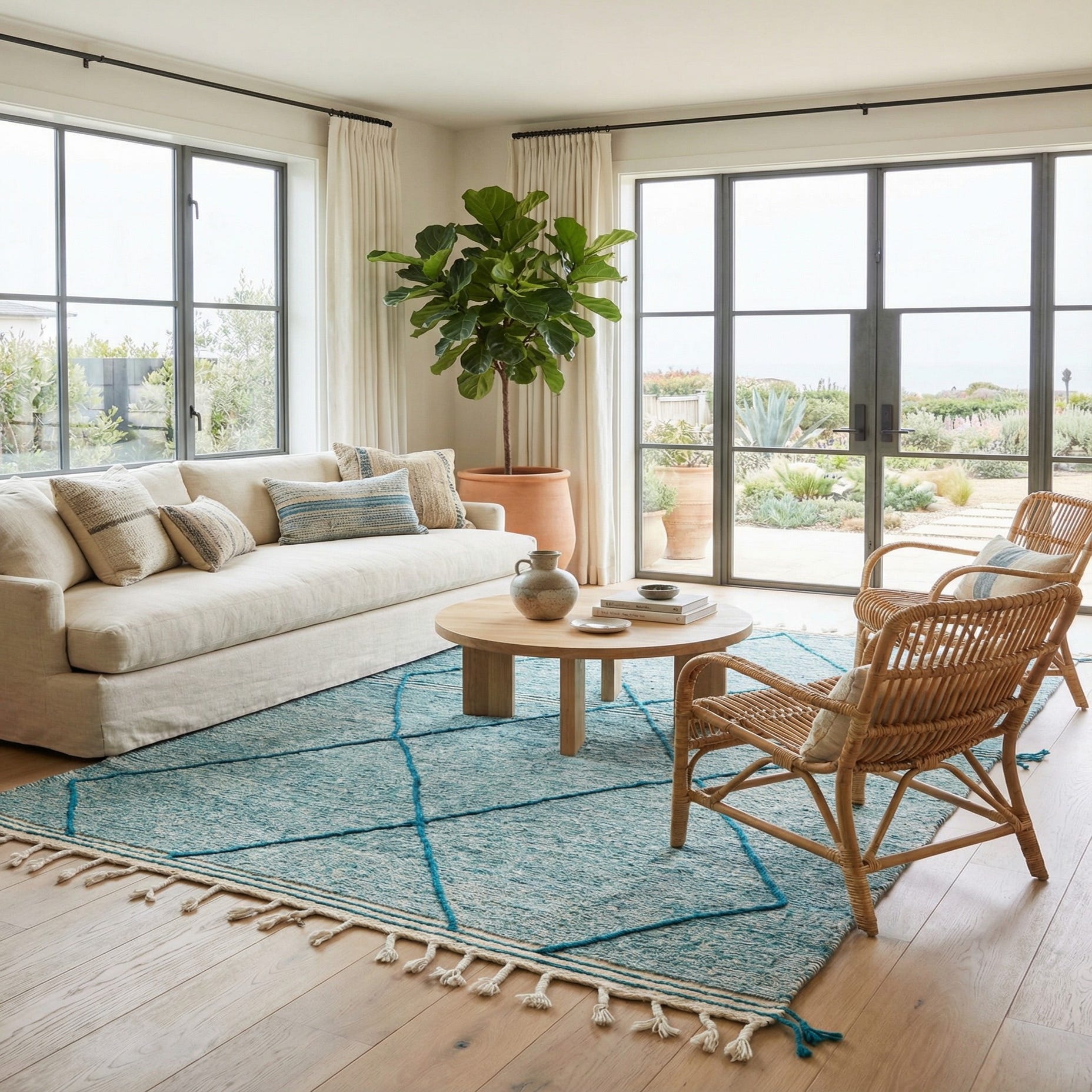 Ideal placements for this rug include living rooms where it can serve as a statement piece, serene bedrooms that benefit from its calming color, or even home offices where its distinct pattern can inspire creativity. It can easily integrate into spaces with a mix of wood, metal, or glass elements, allowing for a harmonious blend of textures and styles.