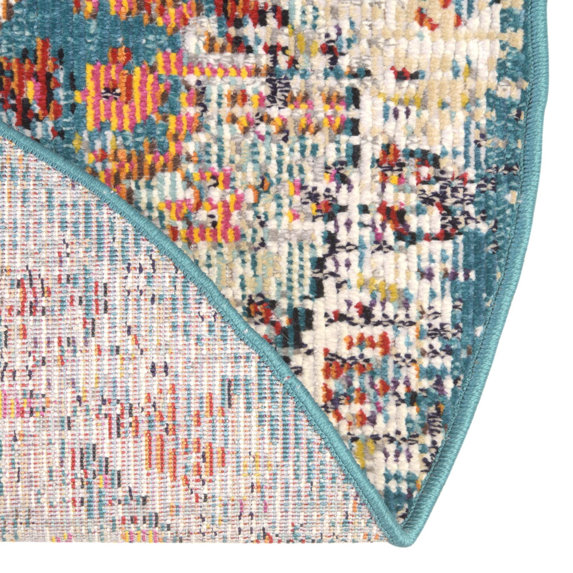 Machine-made from 100% polypropylene, this round piece works well under a circular dining table, as a seating-area anchor in a living room, or centered beneath a bed to introduce color and pattern. It complements light-wood or rattan furnishings, linen-upholstered sofas, and layered boho or eclectic interiors, and also pairs cleanly with navy or charcoal accents in transitional settings.
