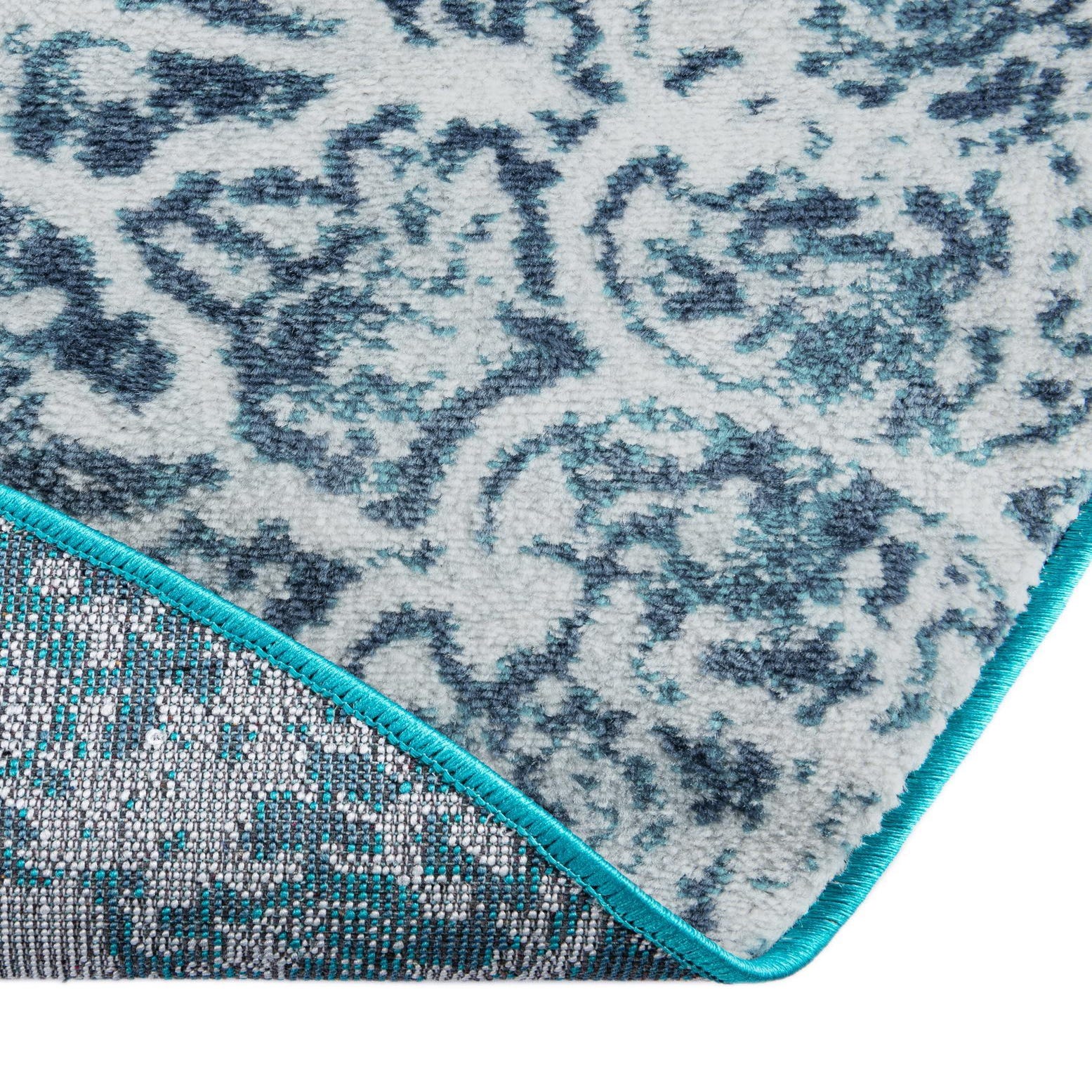 The Monte Carlo collection presents a stylish 7 Ft Round rug that is a key accent for any living space. Machine woven from 100% polypropylene, it offers durability and a shed-free experience. With a vibrant turquoise background, the rug is adorned with an ornate pattern in harmonizing shades of blue and ivory, creating visual interest and contrast.