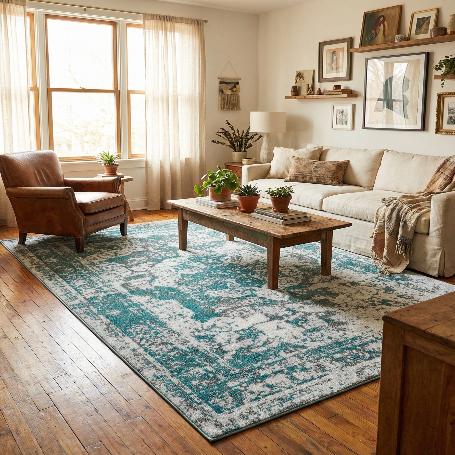 Primary color is Turquoise. Colors in this rug include: Turquoise, Blue, Gray, Ivory.