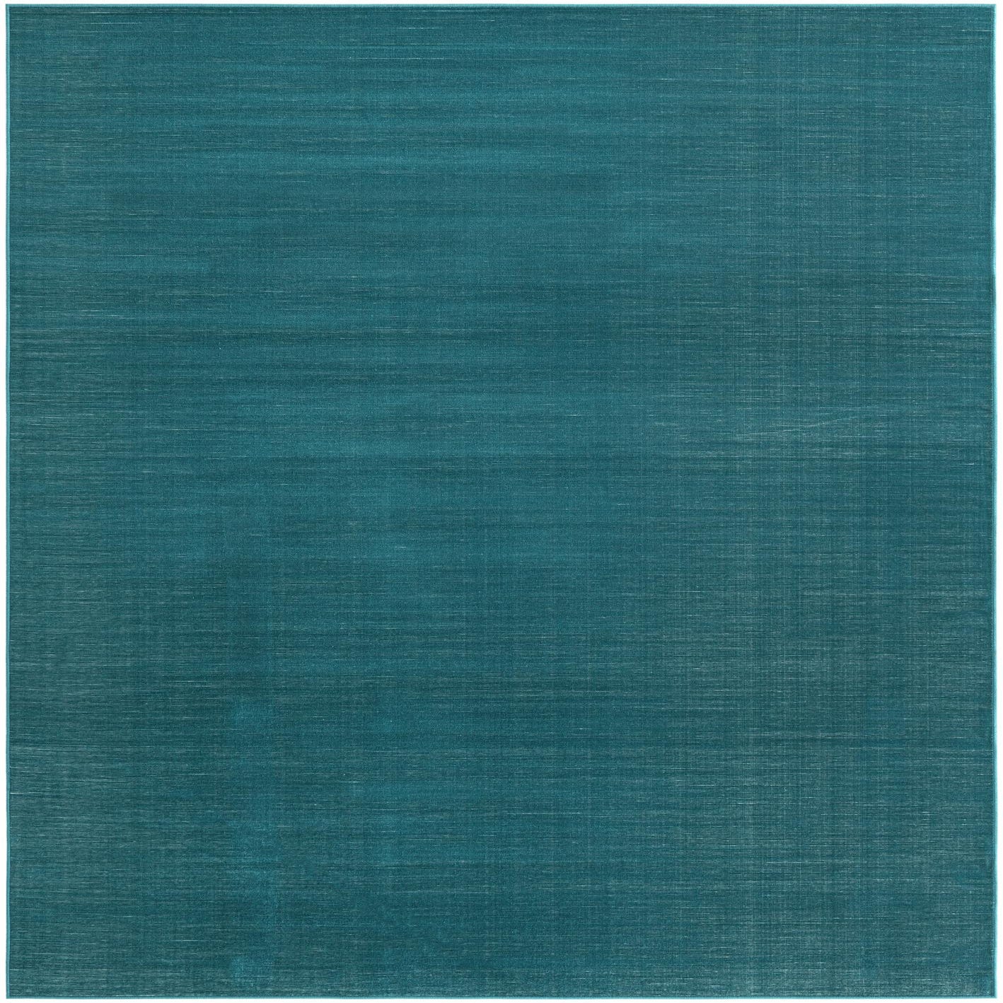 A clean, tonal field of turquoise is threaded with deeper teal accents and fine horizontal striations, creating subtle depth without a formal pattern. The surface has the look of a tightly woven linen; running your hand across it, you feel a low, even pile with a faint linear texture that catches light and creates gentle variation across the color. Machine-made from 100% polypropylene, the construction delivers consistent color clarity and a smooth finish that complements a range of furnishings.