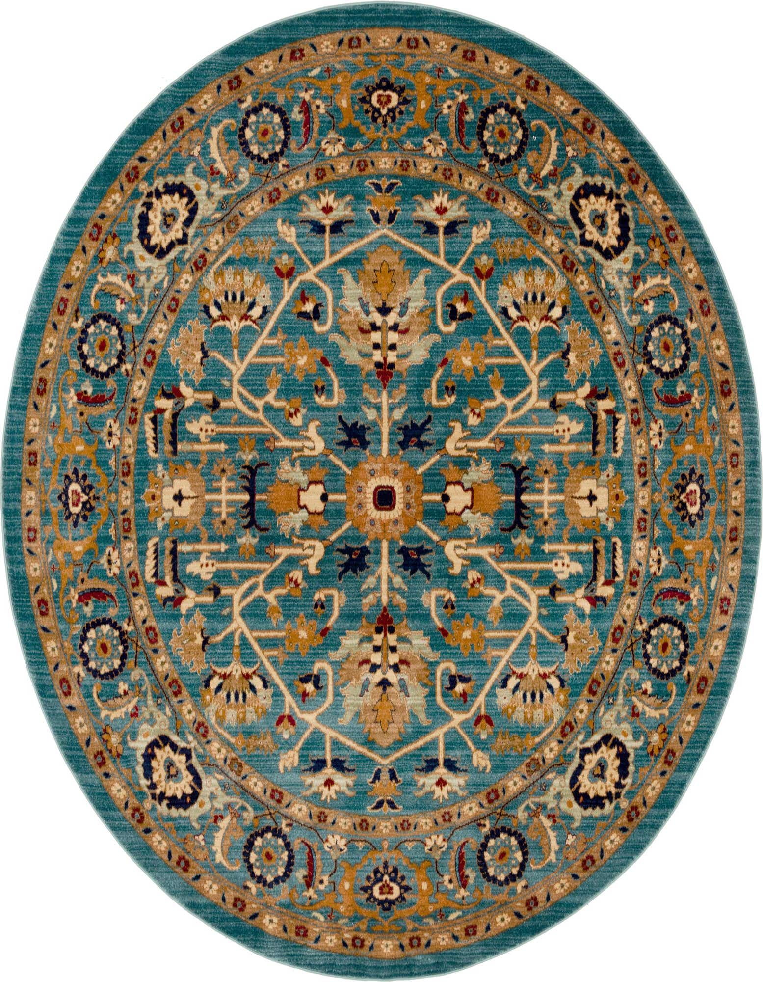 Primary color is Turquoise. Colors in this rug include: Turquoise, Navy Blue, Orange, Red, Ivory, Light Blue.