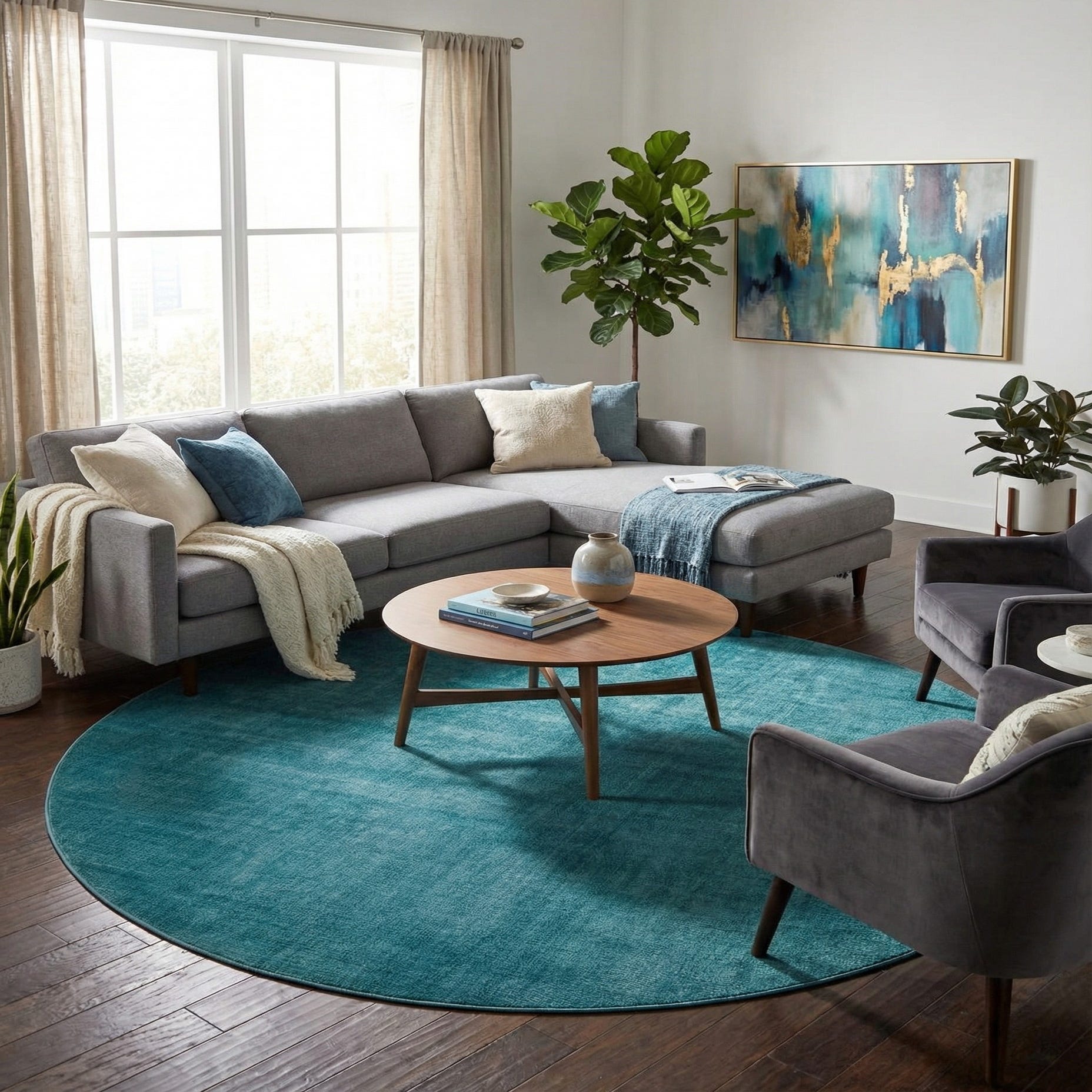 We bought 2 of these - one fr our living room and one for the kitchen - since the rooms are open and have the same color scheme. Pay attention to the pile height - it is pretty flat and not as plush as the other low pile rugs we ordered. And because of that it is taking a while to lay completely flat. The larger size flattened out quicker than the smaller size and we can still see some ripples and the corners still stick up. Color is gorgeous though (we got the teal) and size is accurate.