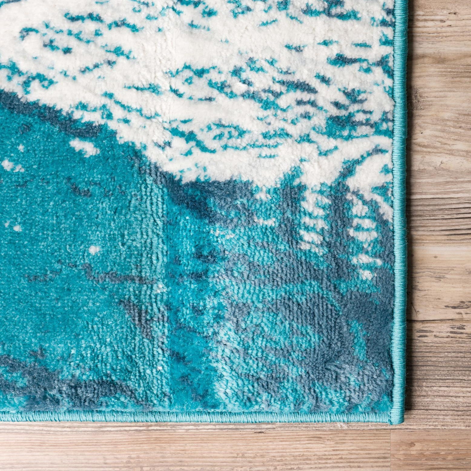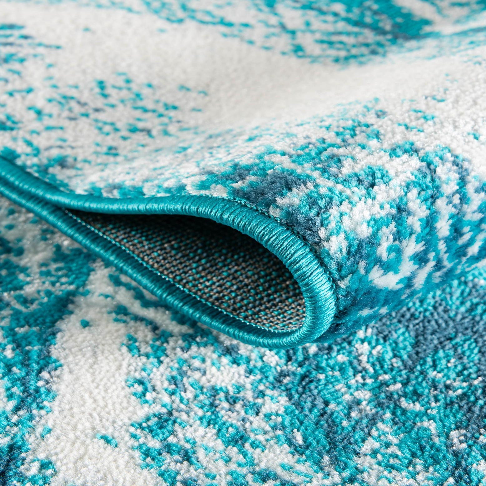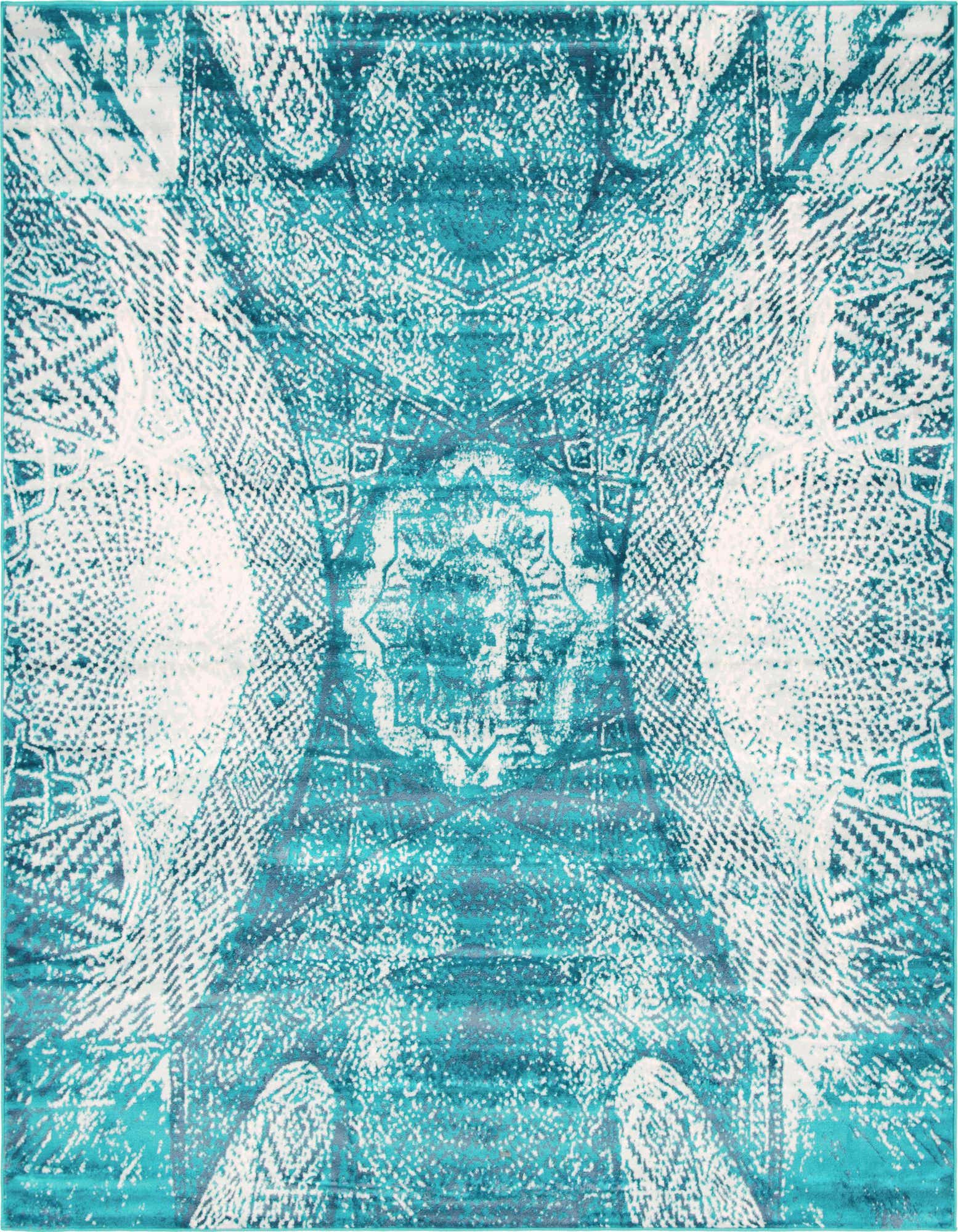 Primary color is Turquoise. Colors in this rug include: Turquoise, Blue, Ivory.