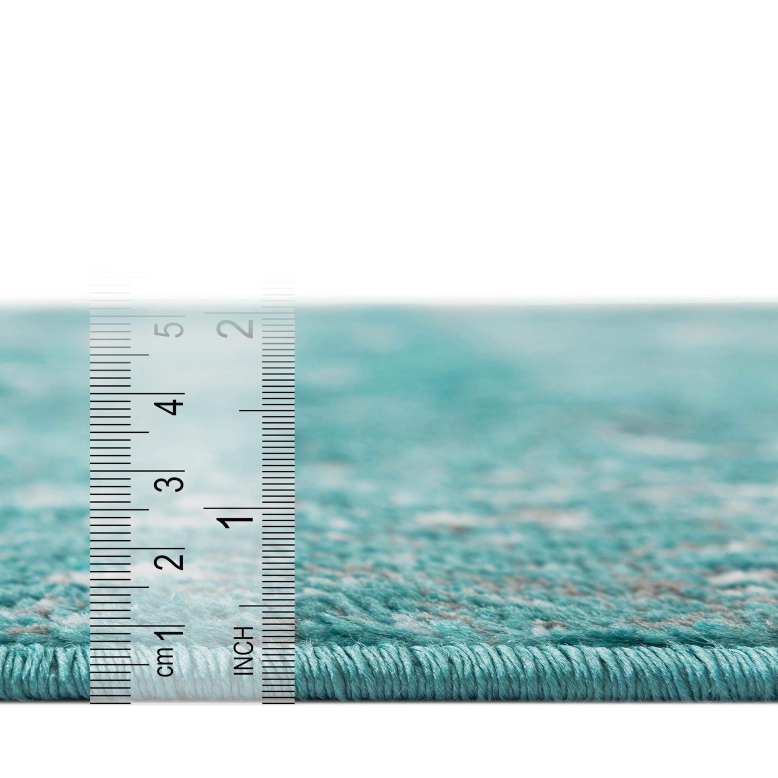 Primary color is Turquoise. Colors in this rug include: Turquoise, Gray, Ivory.