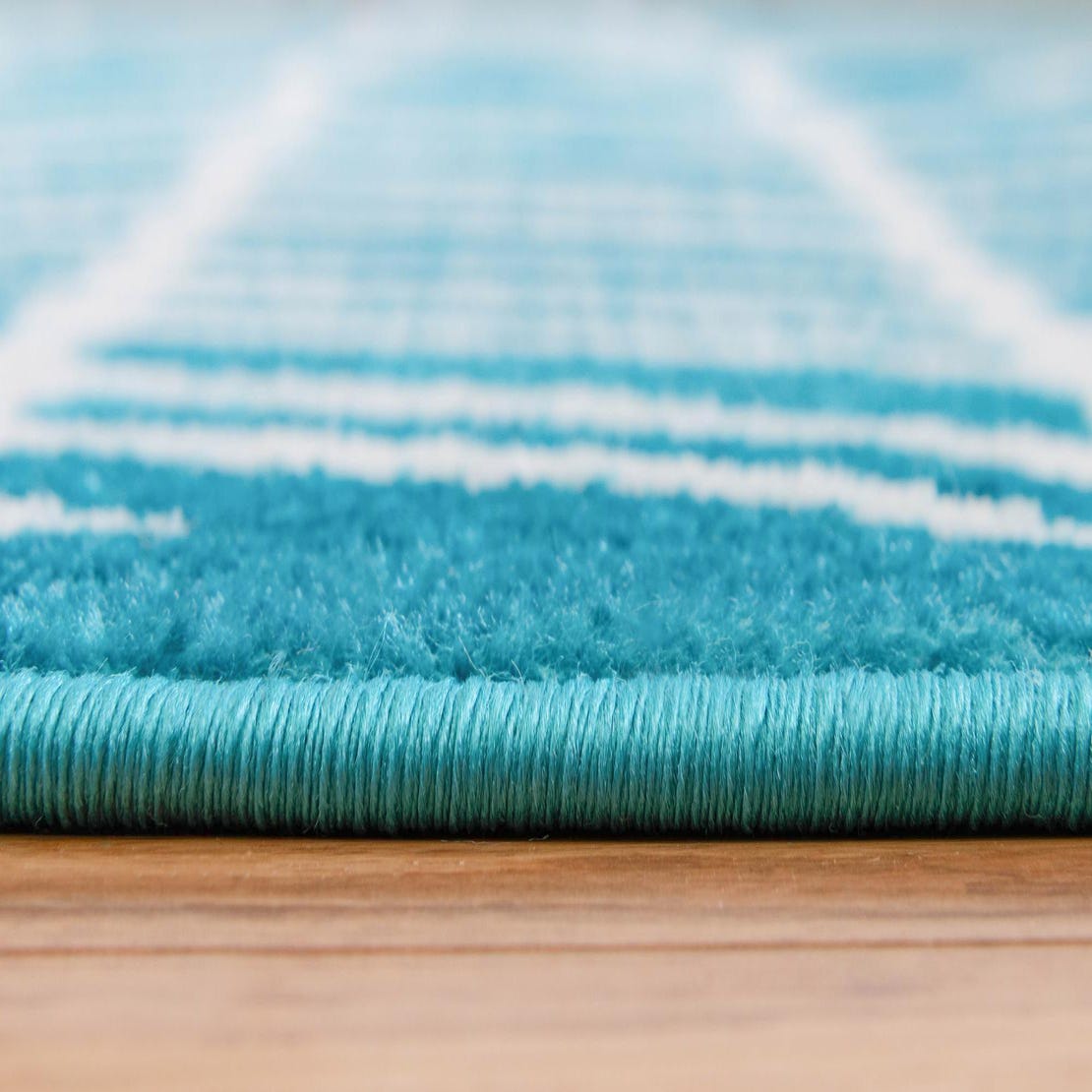 Primary color is Turquoise. Colors in this rug include: Turquoise, Ivory.
