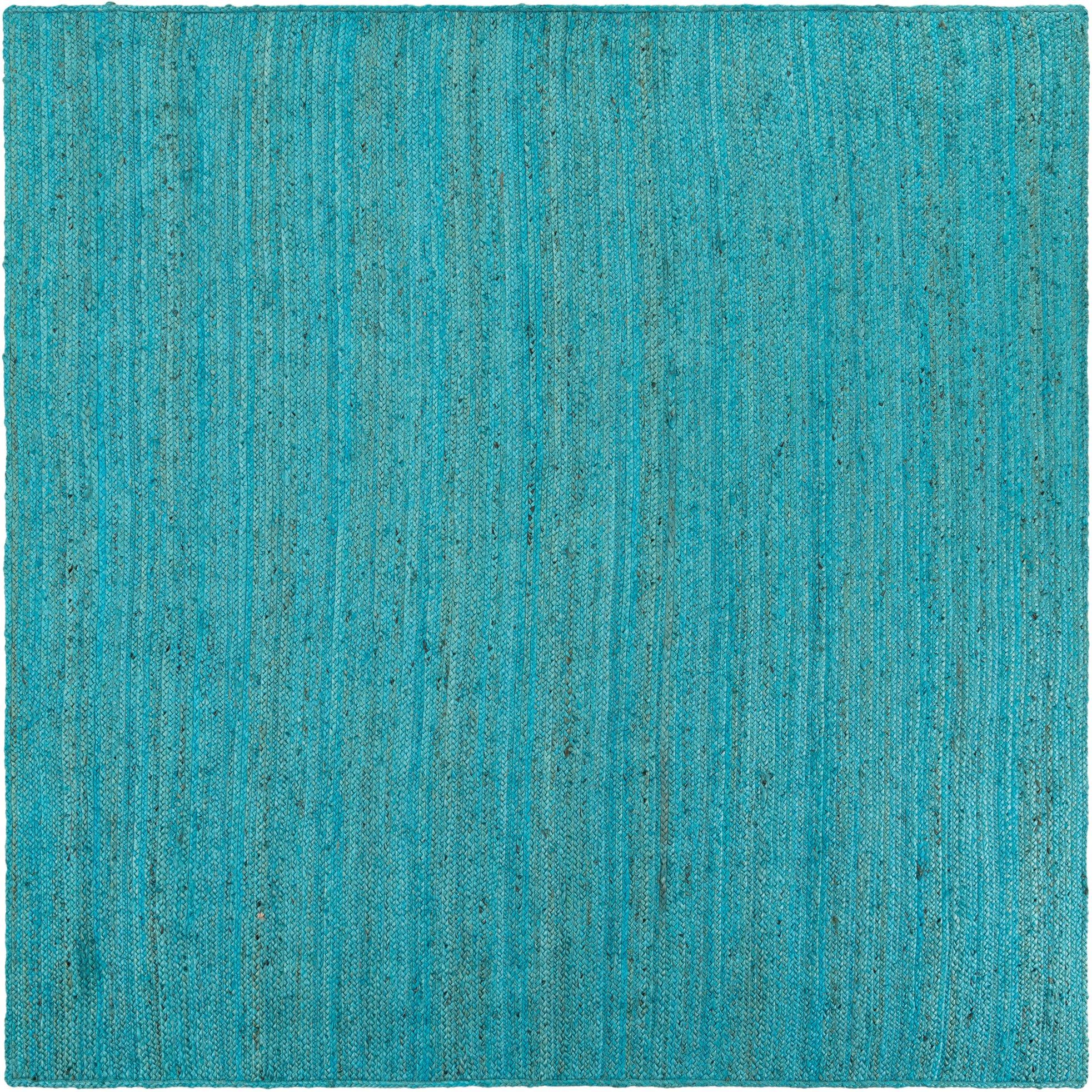 A square 9' 2 x 9' 2 blue jute rug with a modern, natural, solid braided texture, suitable for indoor spaces.