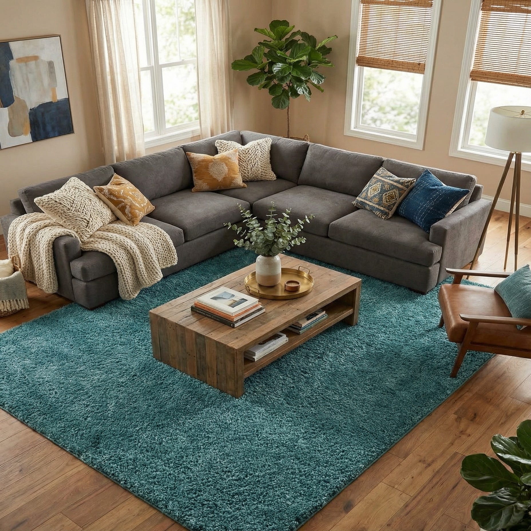 This rug anchors a seating area beautifully or adds a bold, comfortable layer at the foot of a bed or in a cozy reading nook. It pairs naturally with light wood finishes and neutral upholstery, and complements coastal, modern, or bohemian interiors when you want a focused pop of color. Use it to define a living room conversation zone, brighten a family room, or bring a calm, vibrant presence to a bedroom.