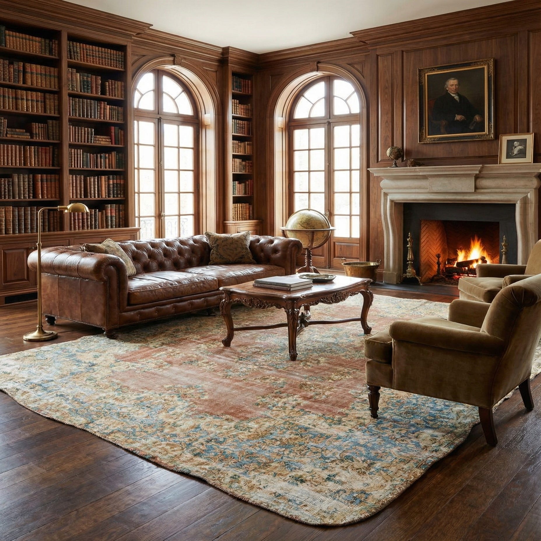 The rich color palette and classic design make this rug a versatile addition to various decor scenarios. It would serve as an anchor piece in a living room grounded in traditional or classical themes, harmonizing with rich wooden furniture and antique accents. Alternatively, it could add depth and opulence to a more eclectic space, providing a stunning contrast against modern furnishings. Whether in a formal dining area or a sophisticated office or library setting, this rug offers an air of timeless elegance that integrates seamlessly with both contemporary and vintage-inspired interiors.