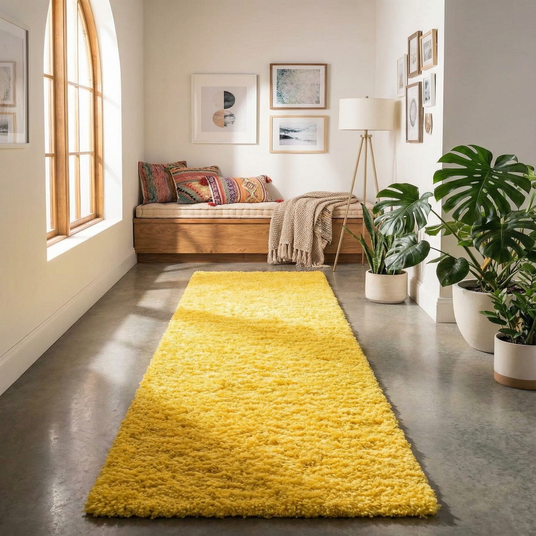 This runner works well in entryways, corridors, kitchen aisles, or as a bedside accent to add cheerful color and softness underfoot. Pair it with light oak or walnut floors and white or charcoal furnishings for a modern contrast, or layer it with natural textiles and rattan accents for a relaxed, bohemian vibe. The Tuscan Sun Yellow is a confident accent that coordinates nicely with navy, gray, and warm wood tones.