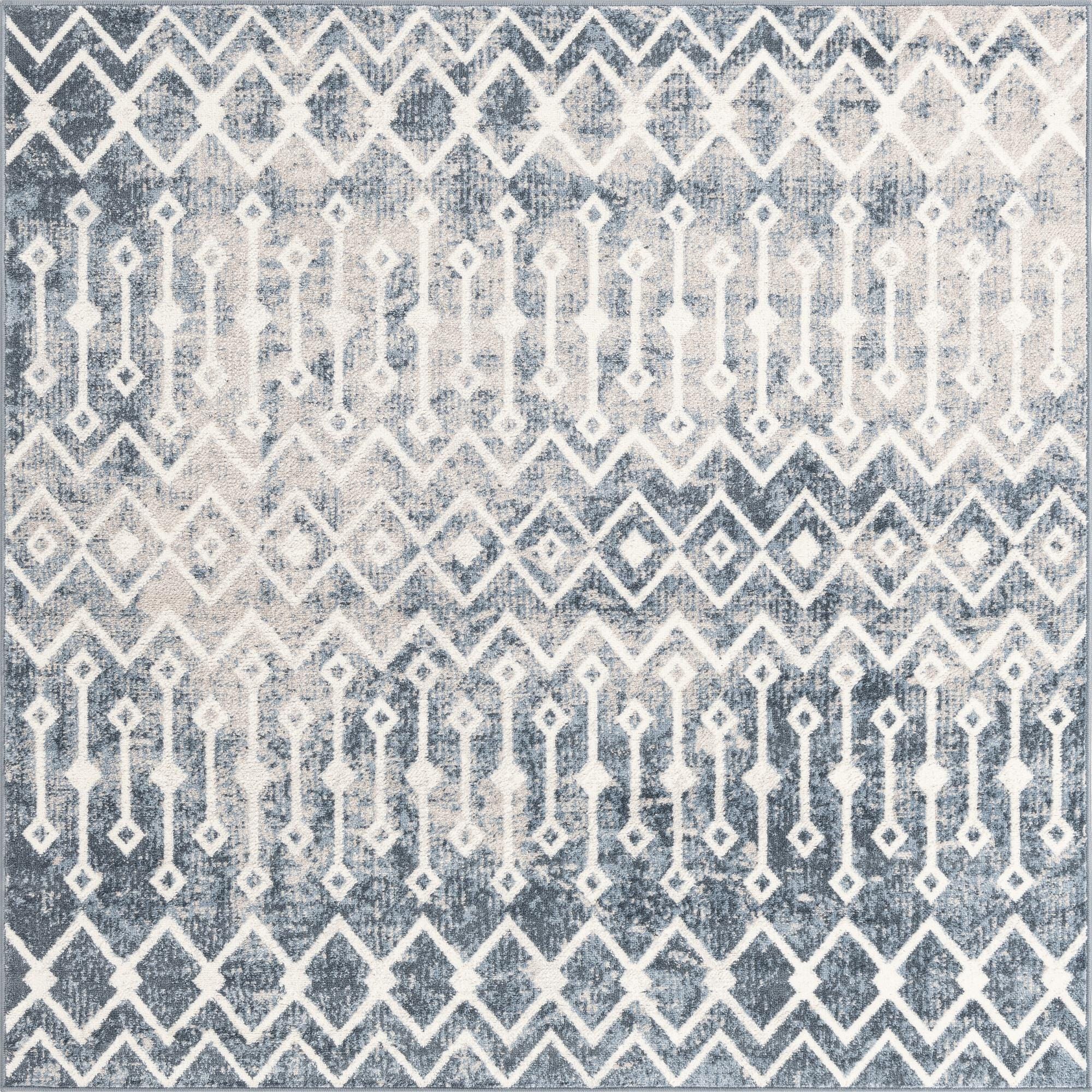 Primary color is Vintage Blue. Colors in this rug include: Vintage Blue, Ivory, Gray.