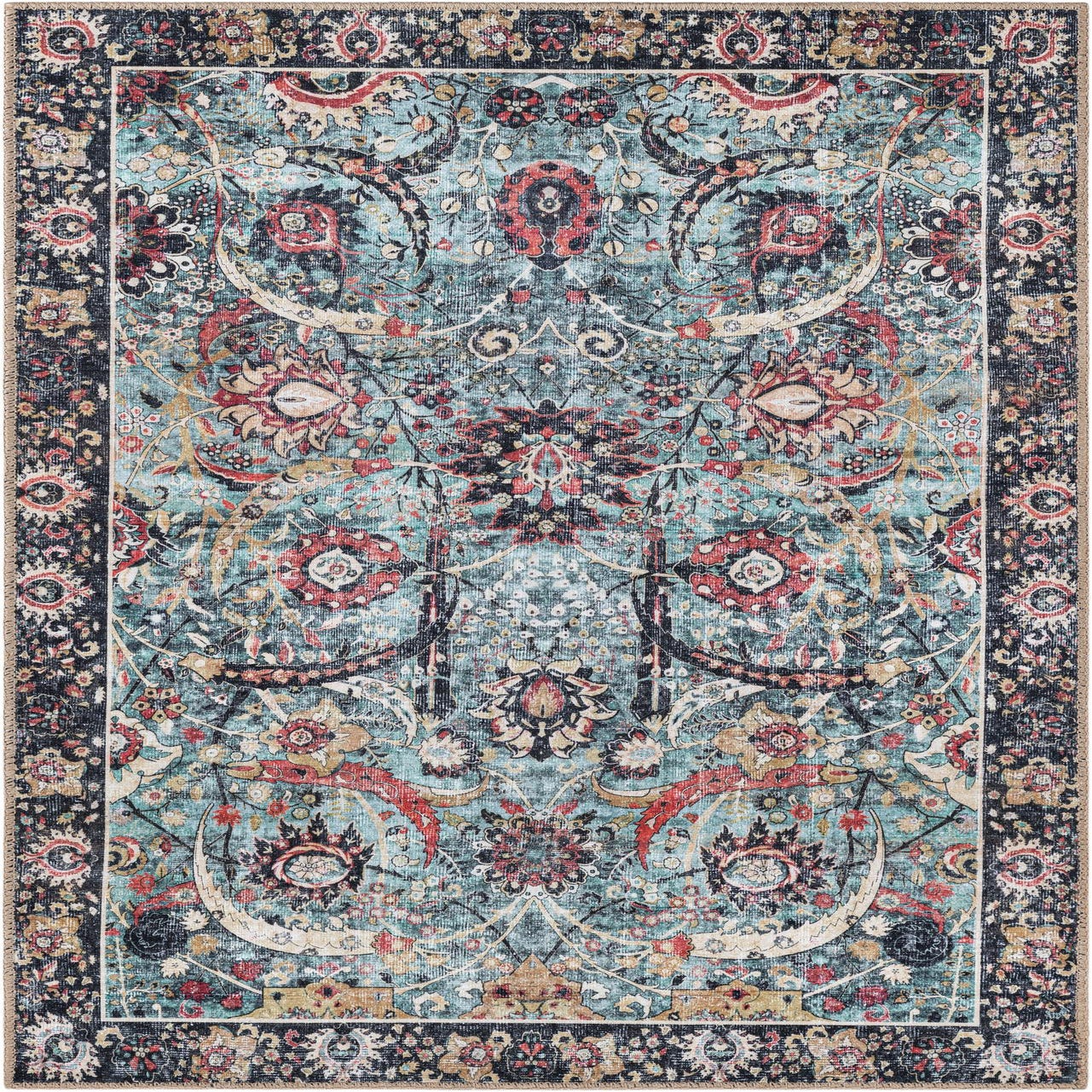 Woven in 100% polyester, the surface feels smooth and softly tactile underfoot with a low-pile finish that holds pattern detail while remaining comfortable to walk on. The printed texture creates subtle dimension where the motifs meet the background, so the rug reads as both decorative and approachable. It works well anchoring a seating group in a living room, adding color to a neutral bedroom, or bringing pattern to an entry or home office. Pair it with warm wood furniture and linen upholstery for a relaxed traditional look, or layer it in an eclectic space with mixed metals and botanicals for added personality.