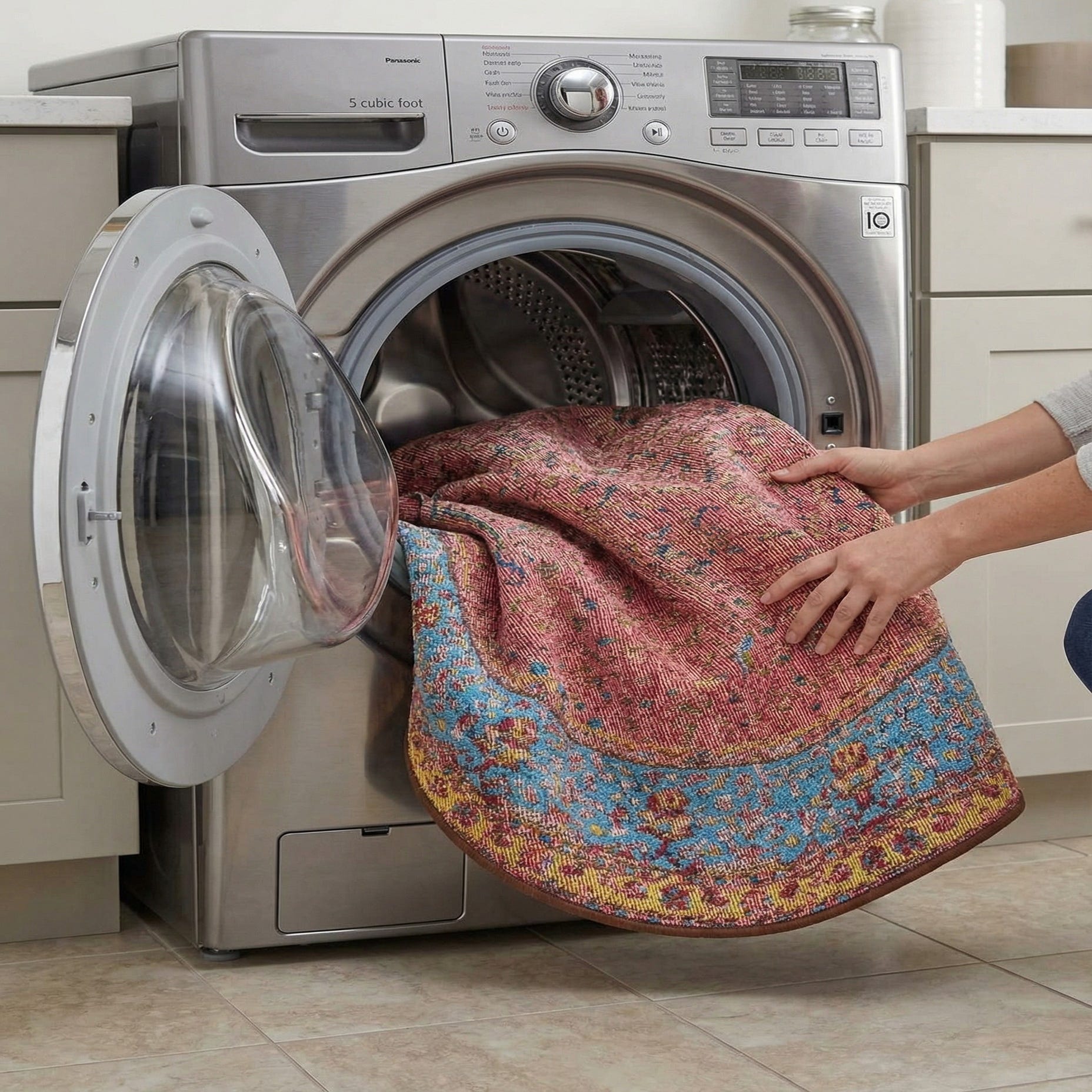 Detail image of  3' 1 x 3' 1  Washable Traditional Indoor / Outdoor Round Rug