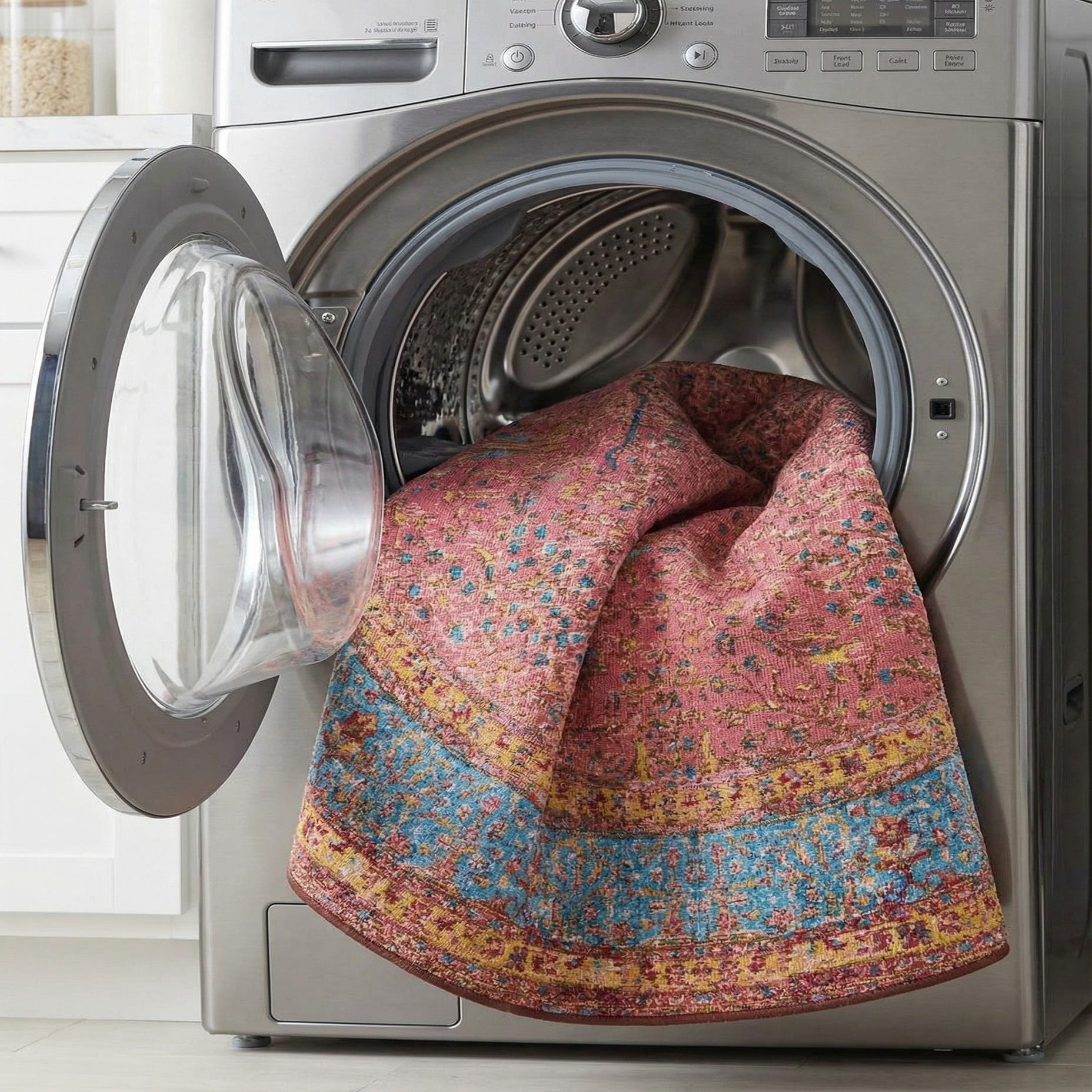 Detail image of  6' 1 x 6' 1  Washable Traditional Indoor / Outdoor Round Rug