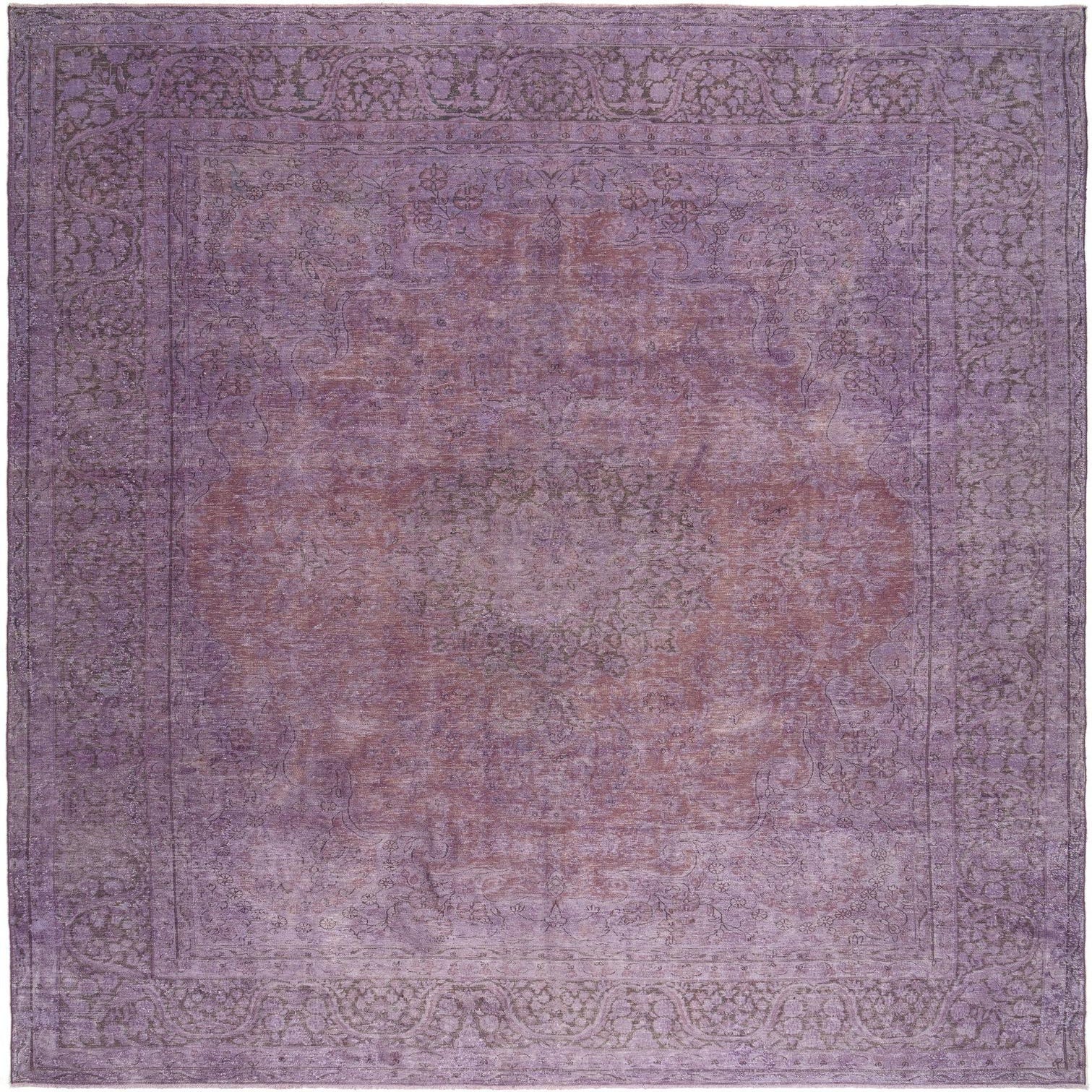 A 10x13 rectangular purple Persian wool rug with a distressed traditional pattern and intricate border.