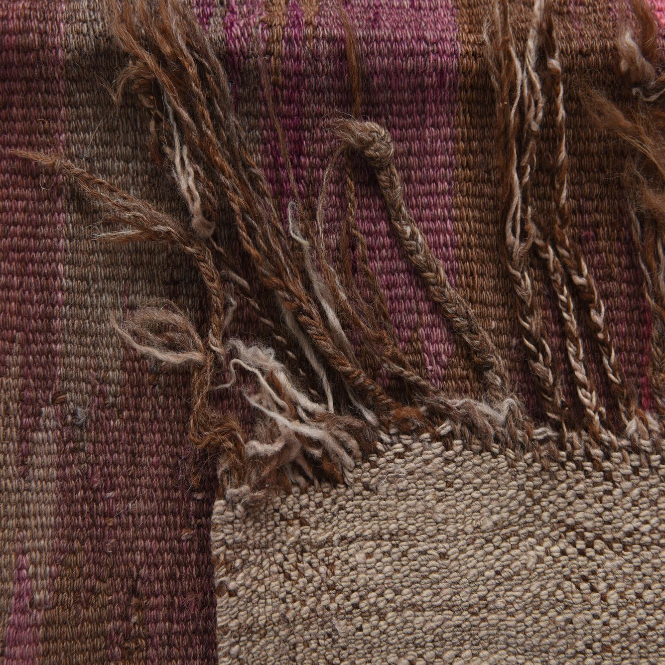 Primary color is Violet. Colors in this rug include: Violet, Brown, Pink, Ivory.