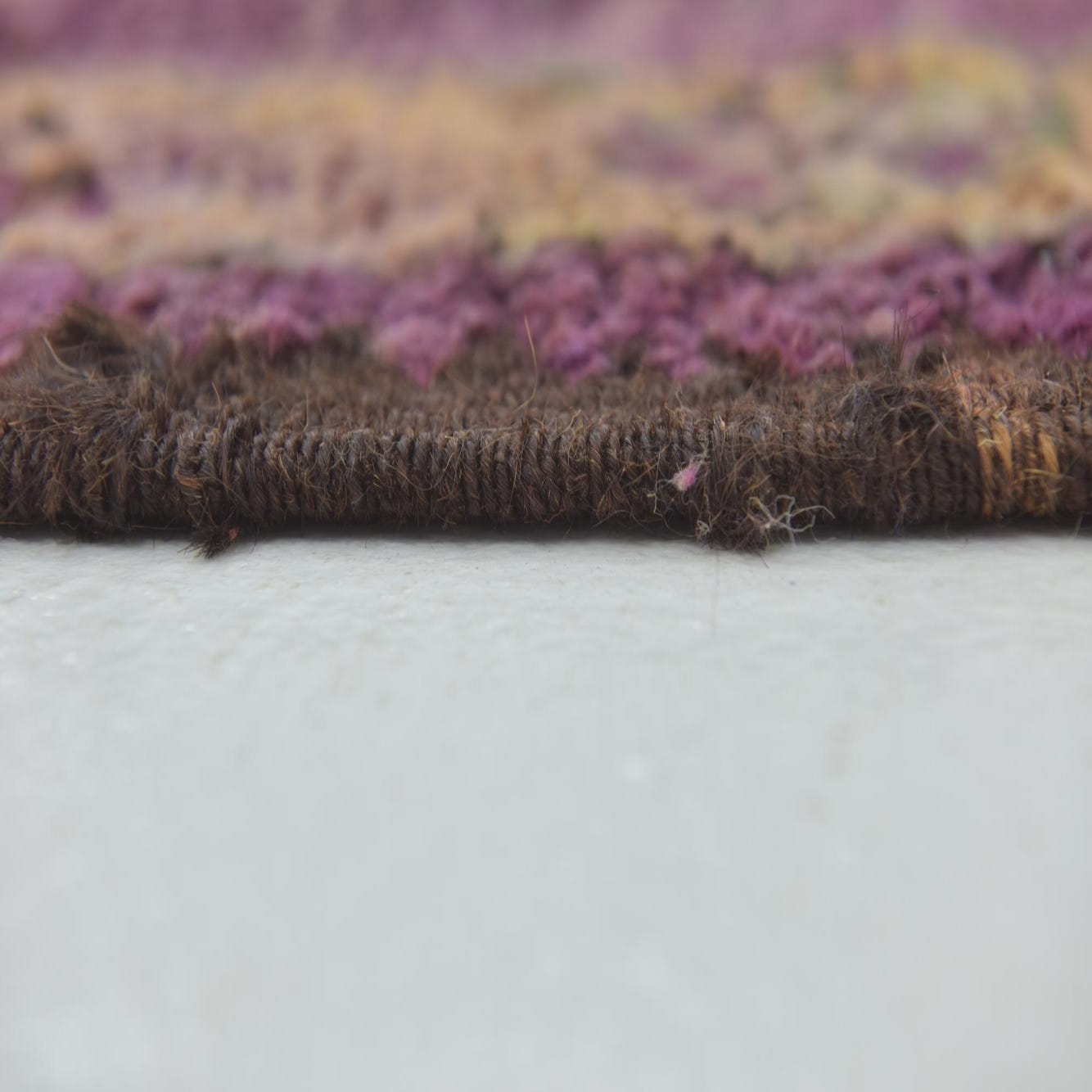 Primary color is Violet. Colors in this rug include: Violet, Beige, Cream, Gray, Orange, Peach.