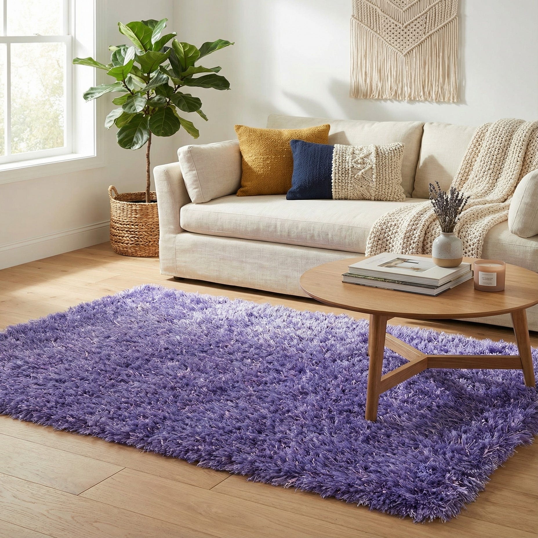 A rectangular 3x5 purple shag area rug with a thick, textured pile, perfect for adding softness to any indoor space.
