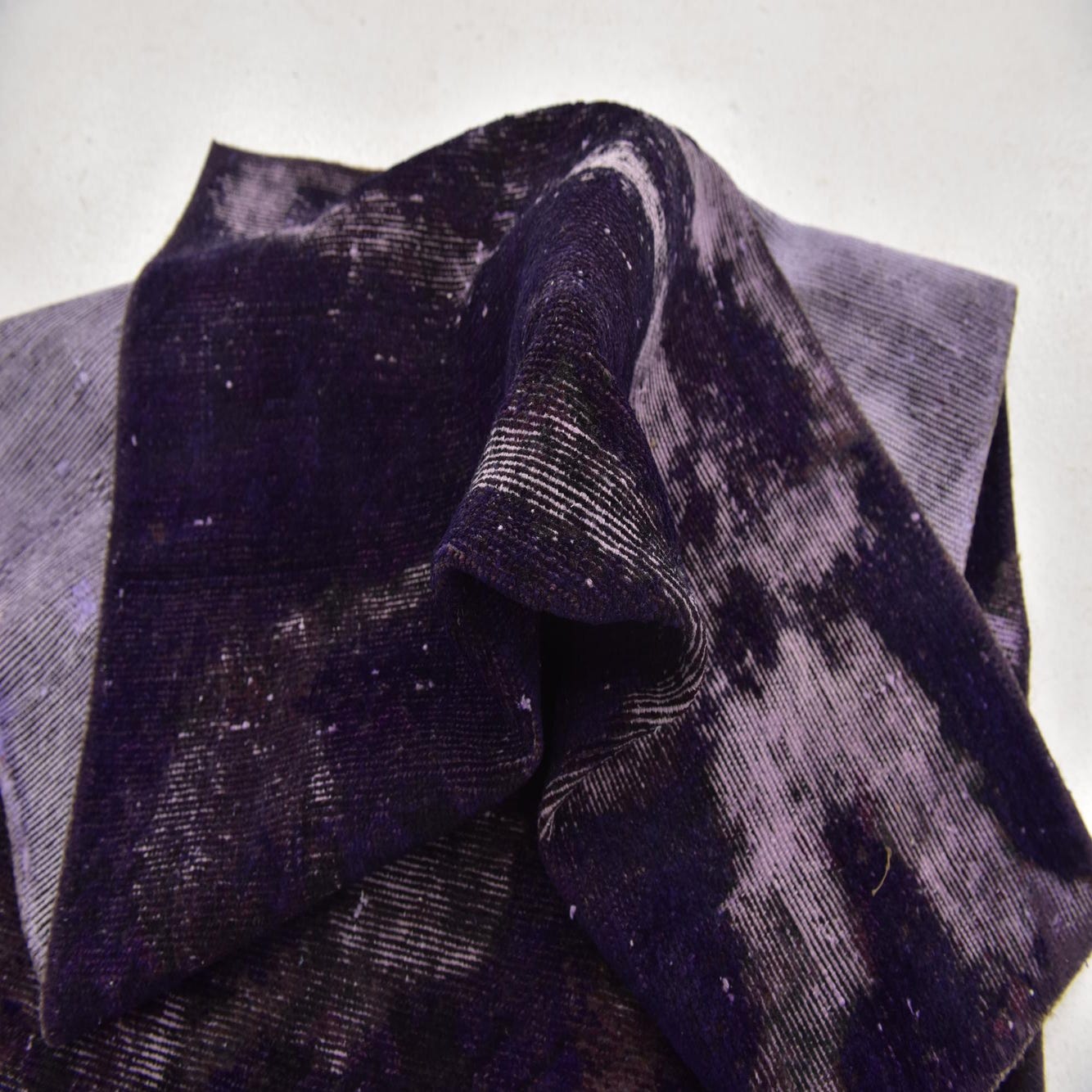 A 3x5 rectangular purple wool rug with a distressed abstract Persian pattern, suitable for a kitchen or entryway.