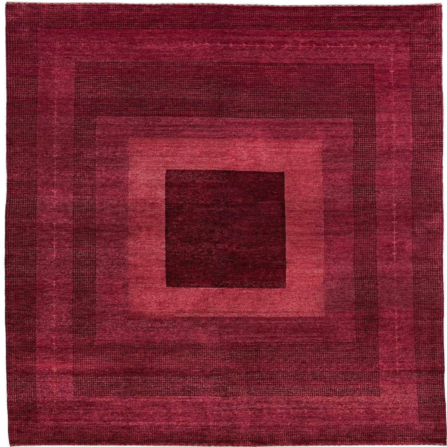 A 4x6 rectangular Gabbeh rug in varying shades of purple, featuring a modern concentric square pattern.