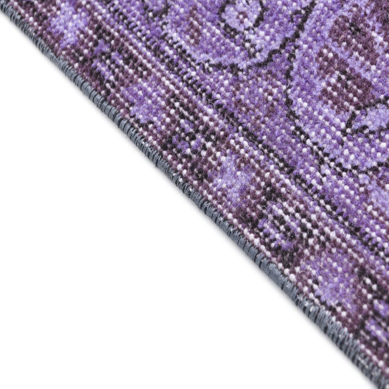 Primary color is Violet. Colors in this rug include: Violet, Black, Plum Red, Natural NC.