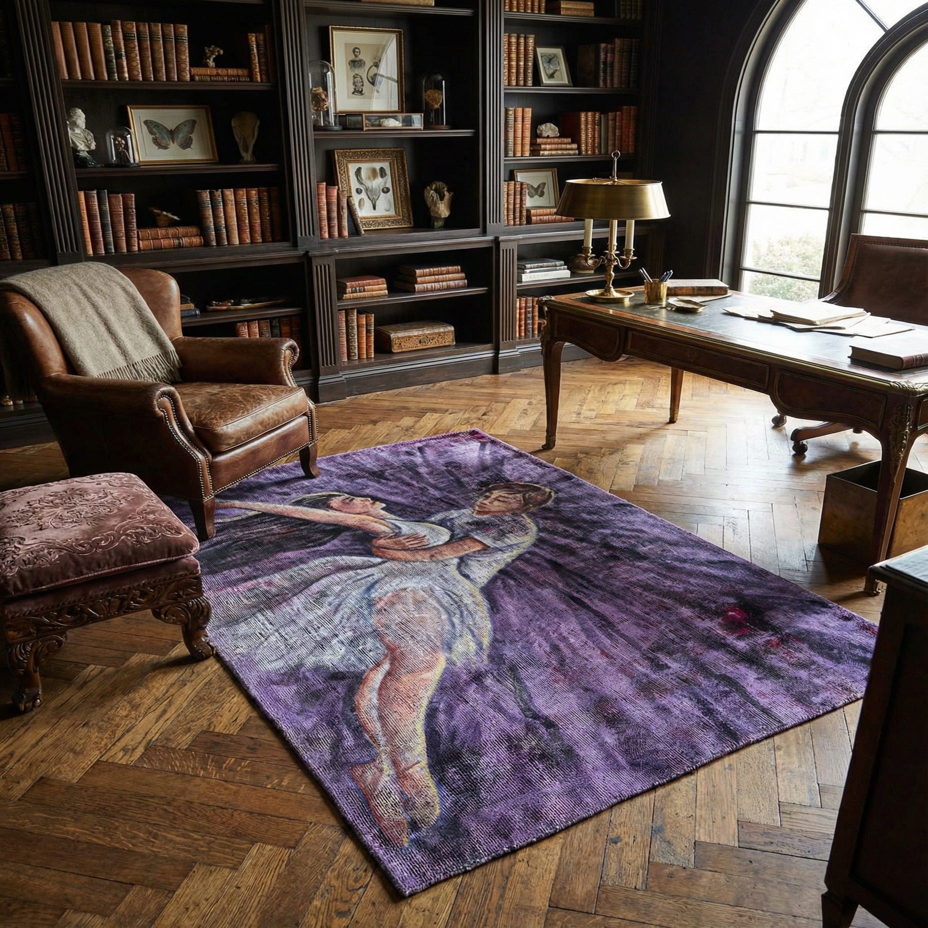 • Deep plum velvet armchair
