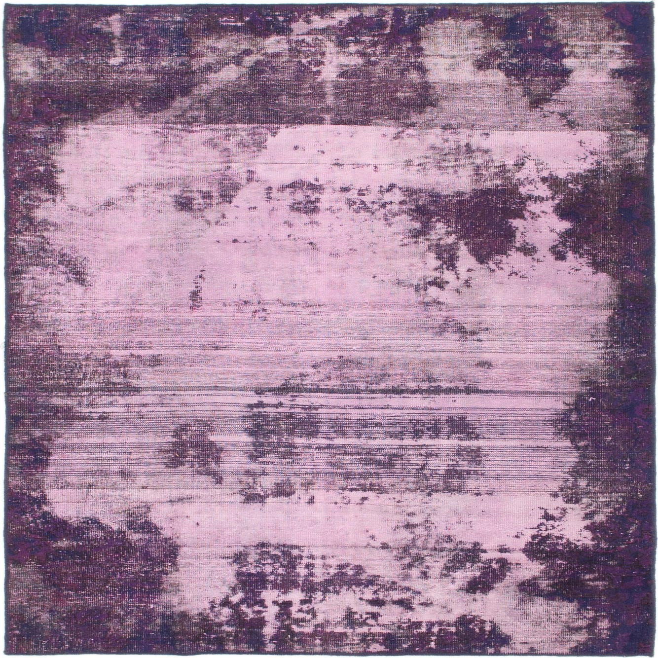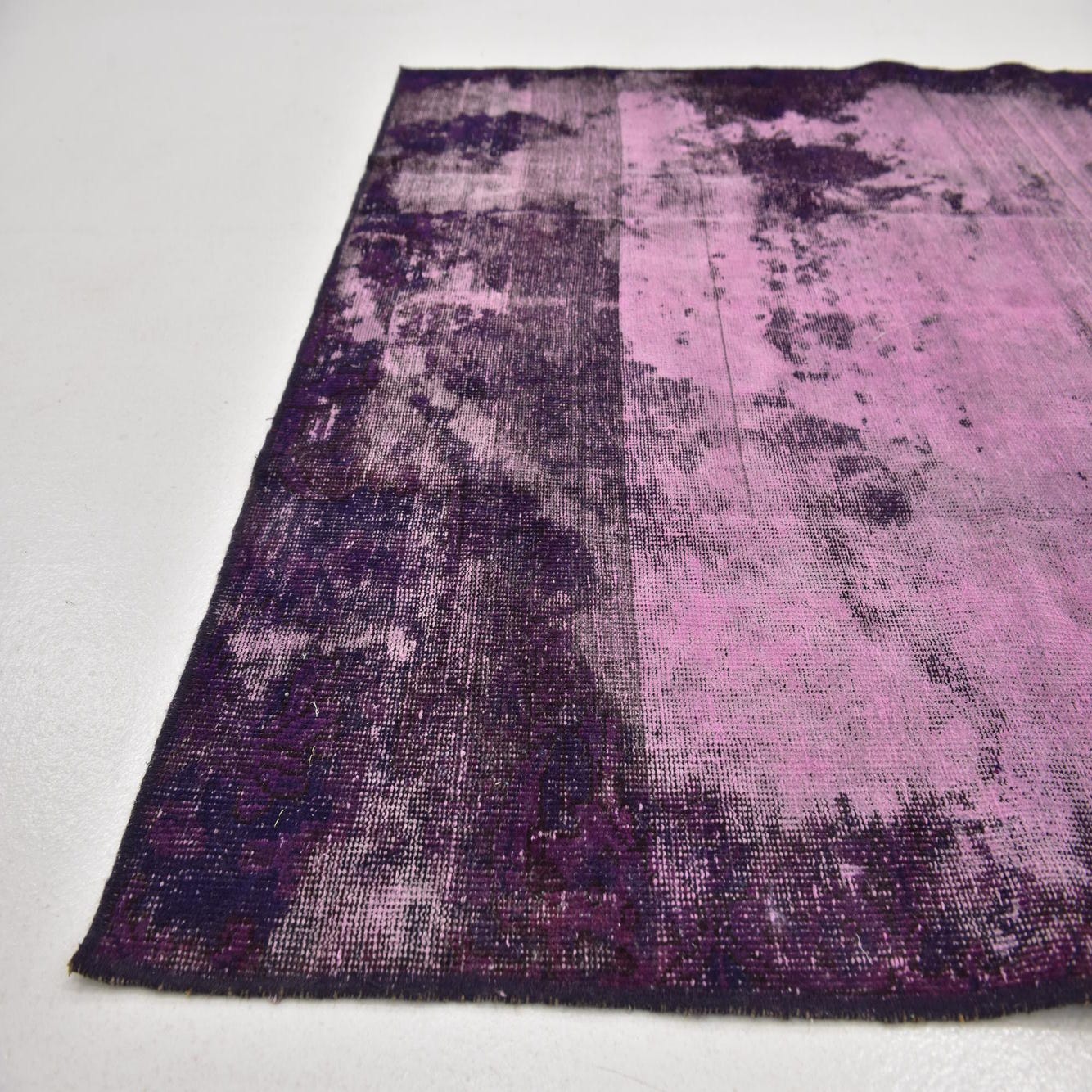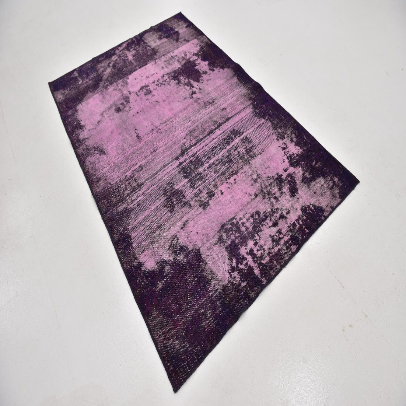 A 4x6 rectangular purple transitional area rug with a distressed vintage abstract pattern, suitable for an indoor living room.