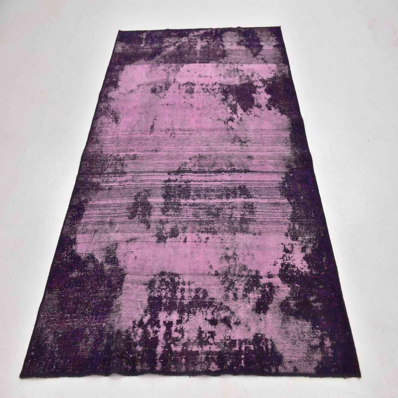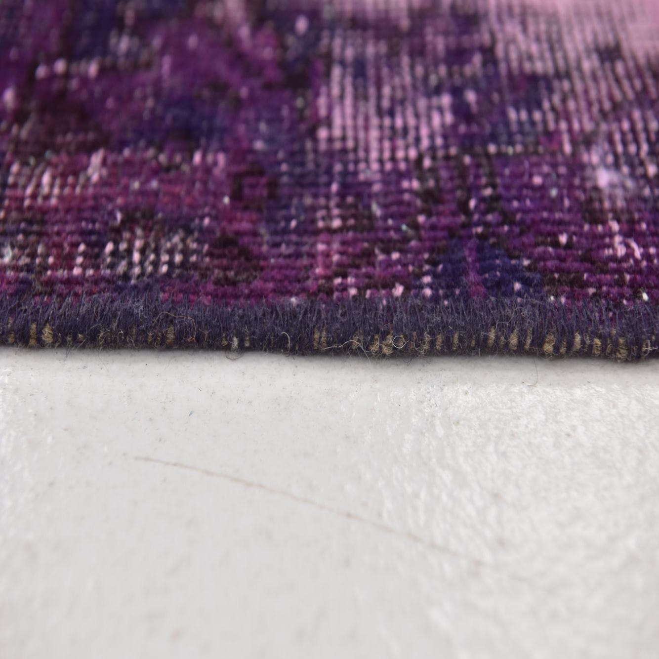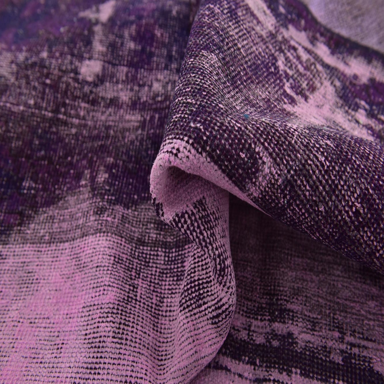 A 4x6 rectangular purple transitional area rug with a distressed vintage abstract pattern, suitable for an indoor living room.