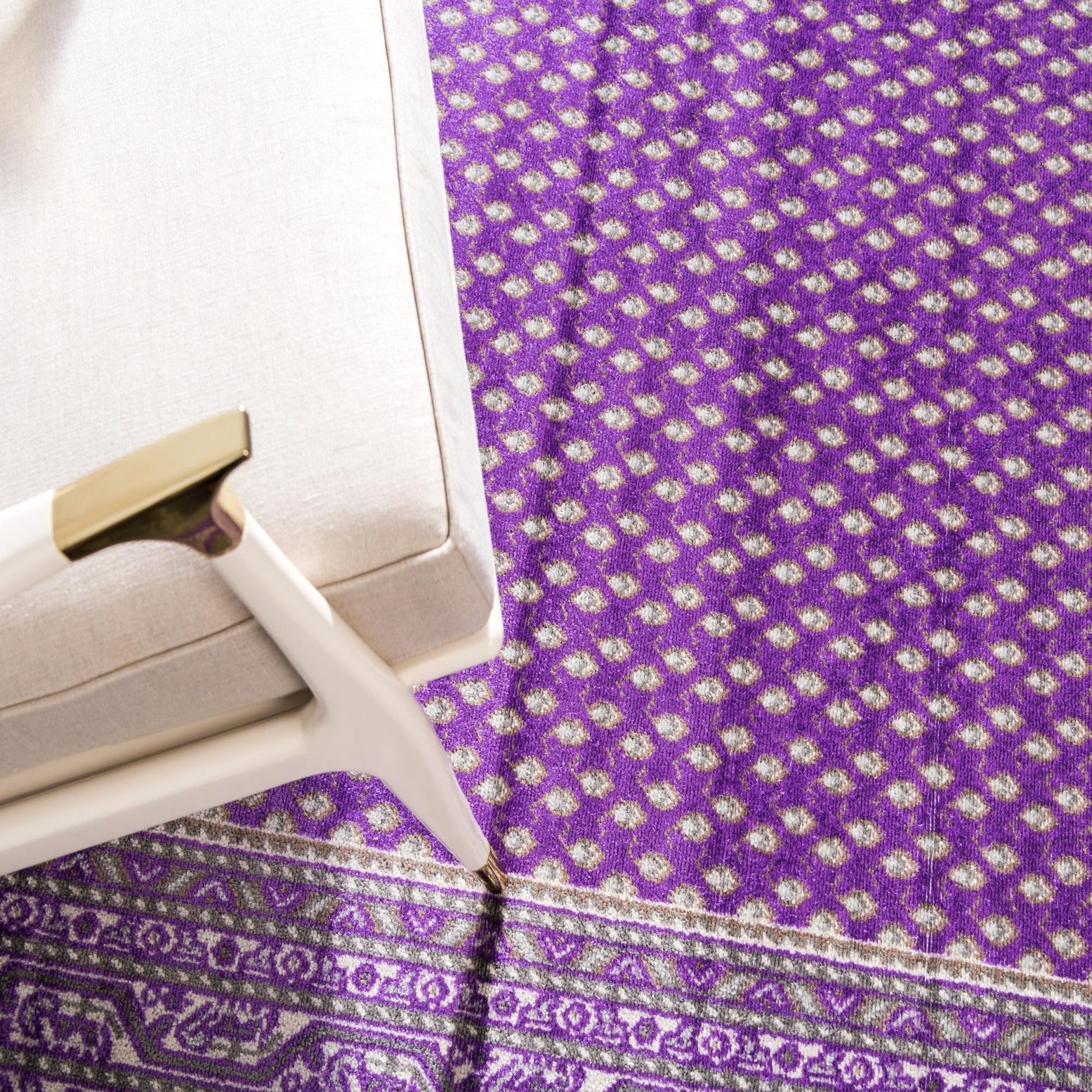Primary color is Violet. Colors in this rug include: Violet, Gray, Ivory, Light Brown.