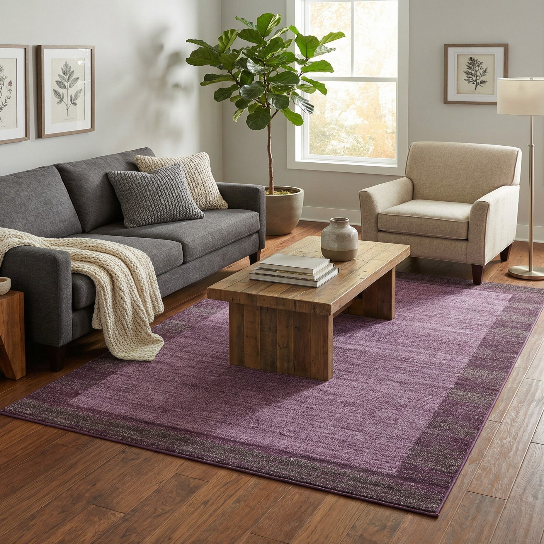 Primary color is Violet. Colors in this rug include: Violet, Gray.
