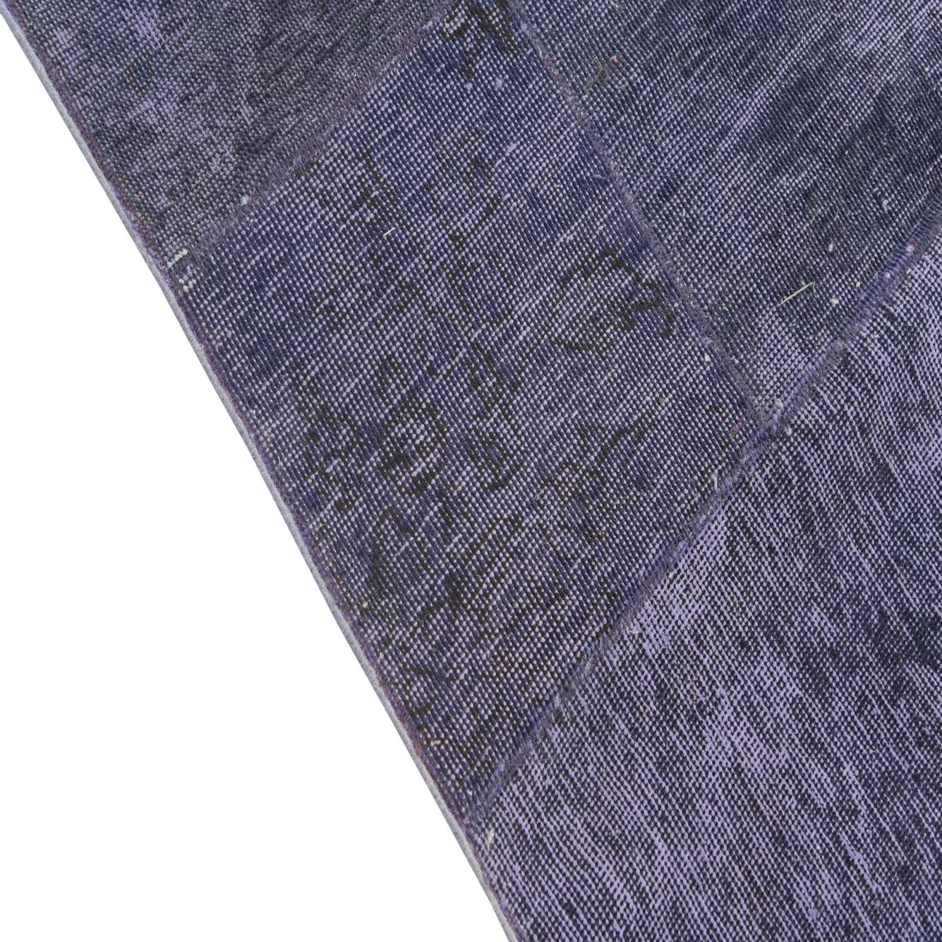 Part of the Ultra Vintage Collection, this 5x8 hand-knotted rug is made of 100% wool, providing a durable and tactile surface underfoot. The piece exhibits a patchwork pattern with an eclectic mix of darker and lighter violet hues that seamlessly blend together, accented by subtle black touches. The variations in shading give the rug depth and create a visual intrigue synonymous with vintage aesthetics.