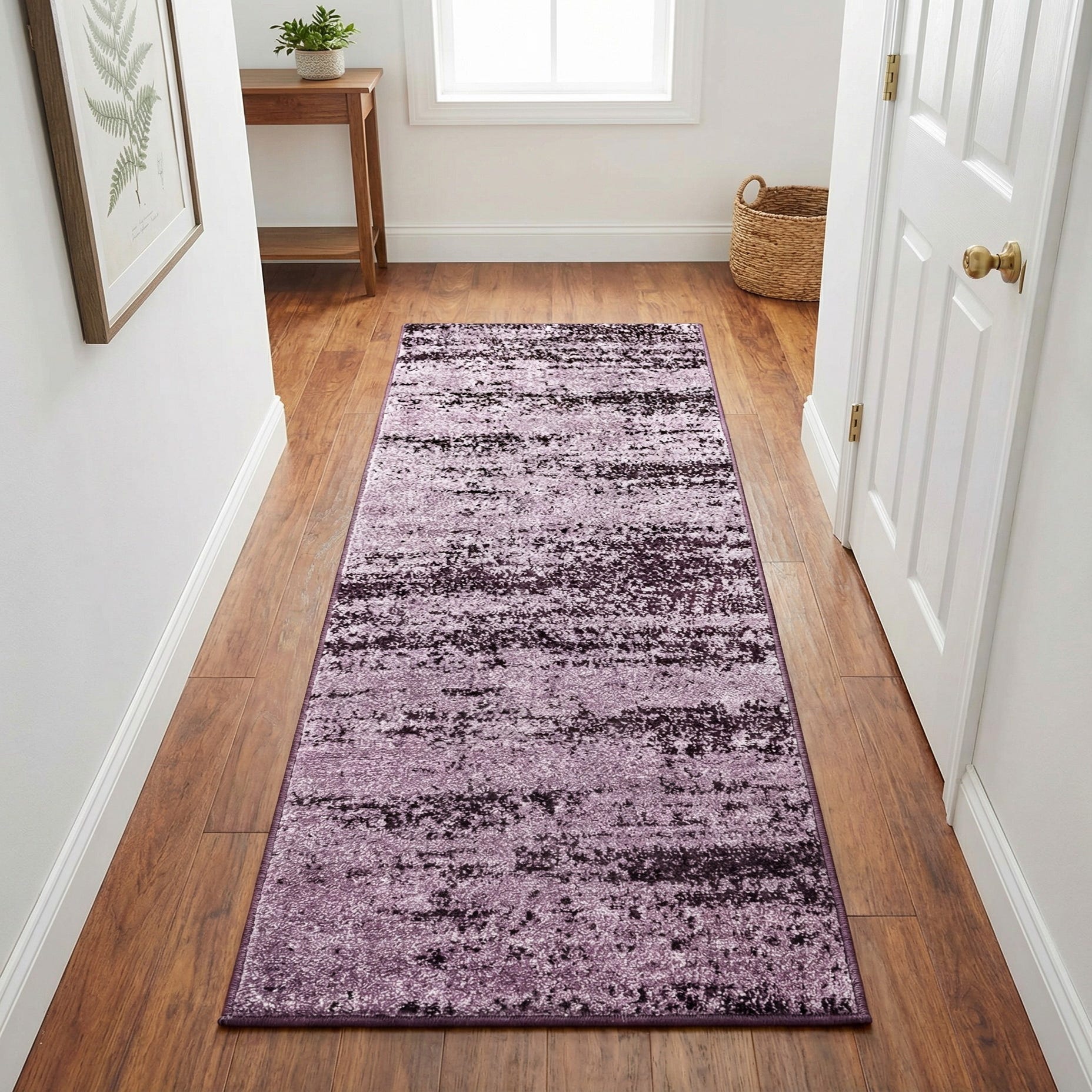 This runner works well in a variety of settings: place it along a hallway or entry to add color and visual interest without overwhelming the space, use it alongside a bed to introduce a plush, cozy touch, or layer it under a console or dressing table for a chic, contemporary vignette. Pair with warm metallics, neutral linens, or jewel-toned accents to complement the violet and deepen the room’s palette.
