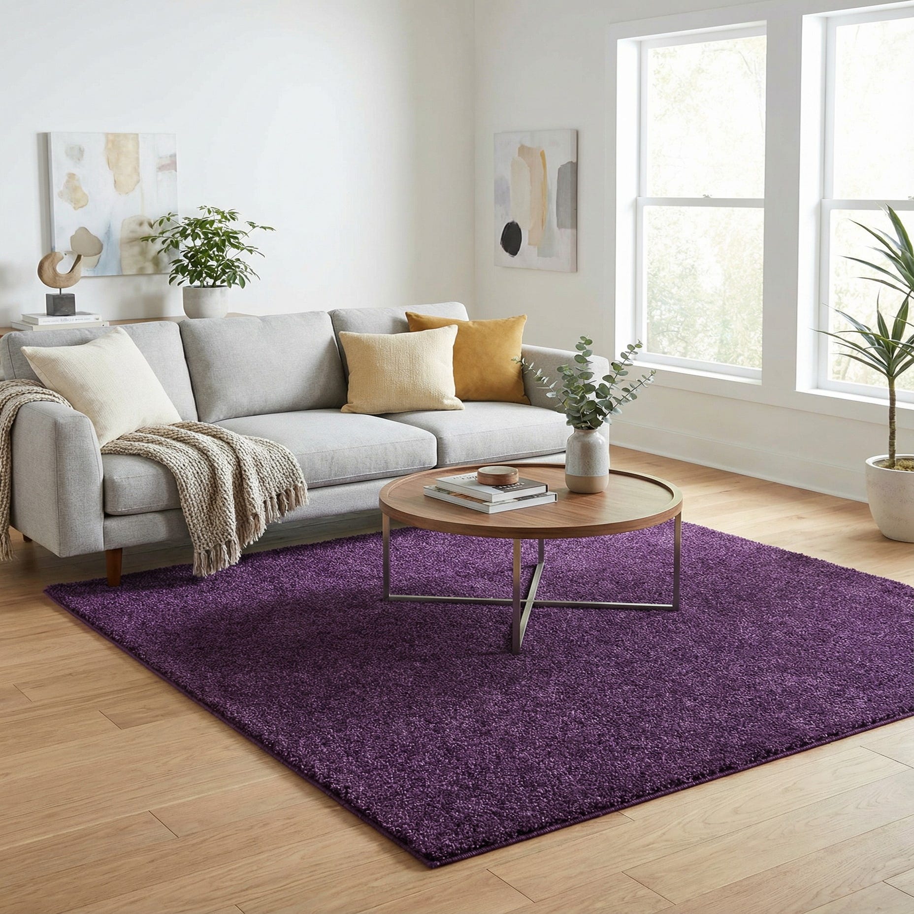 Its rich violet hue can act as a statement piece in minimalist designs or harmonize with bolder, eclectic styles. Pairing this rug with complementary colors such as shades of grey, white, or silver can create a sophisticated palette, while matching it with warm woods or metallic accents enhances the depth of its color.